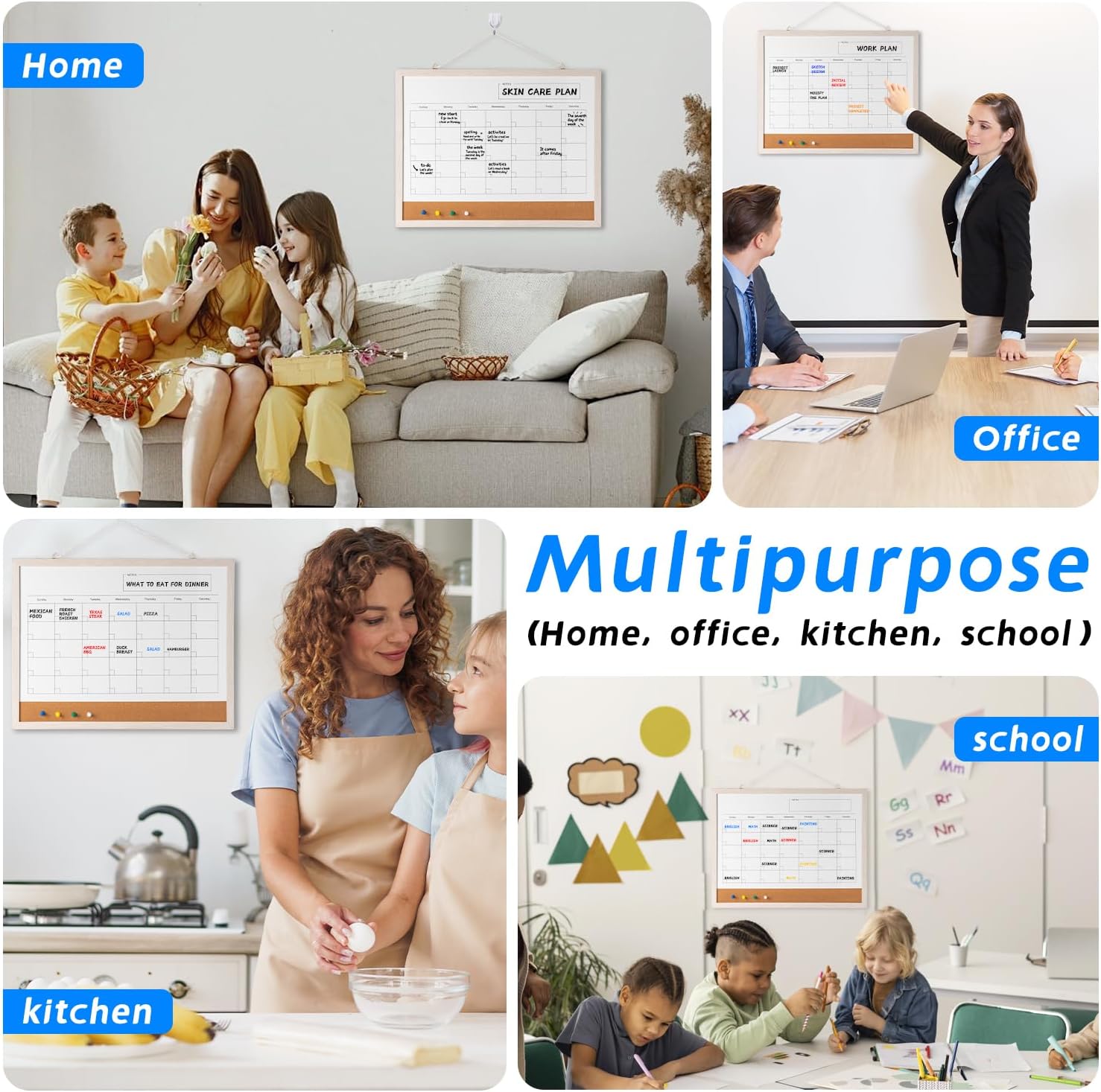 - ✔️ 【2-in-1 Multi-Function Design】This product combines a magnetic whiteboard, calendar, and cork bulletin board into a space-saving 17" x 13" frame. Easily record schedules, work plans, study tasks, meal plans, and more.