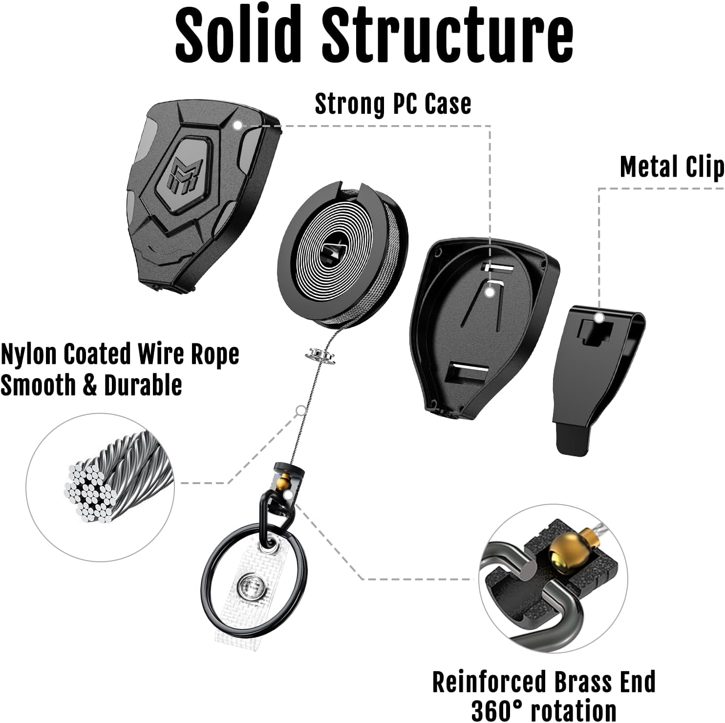 - [STRONGER MATERIAL]: Our retractable ID holders use PC shells and iron badges clips, and its powerful impact performance can keep you away from fragile plastic.