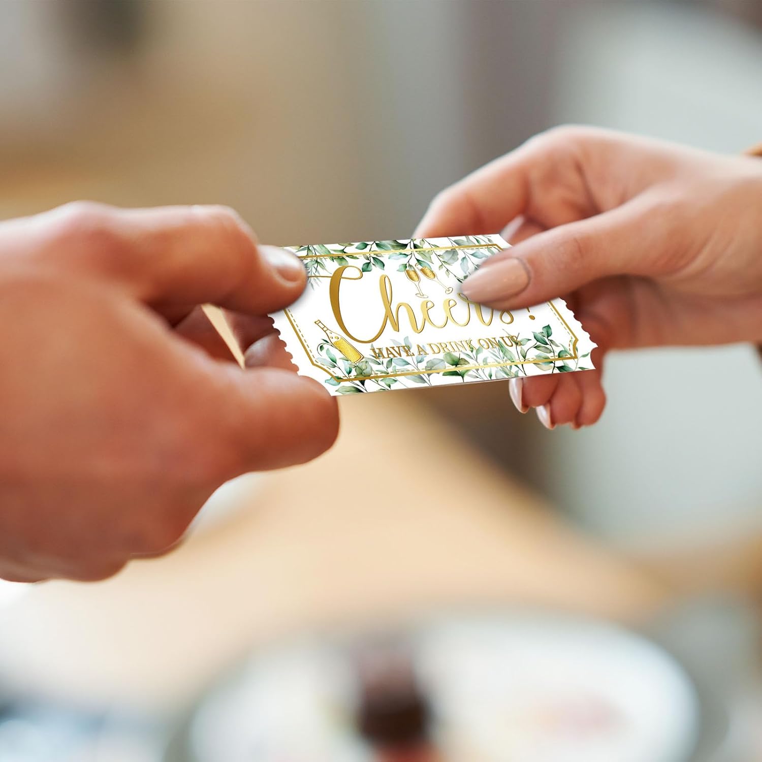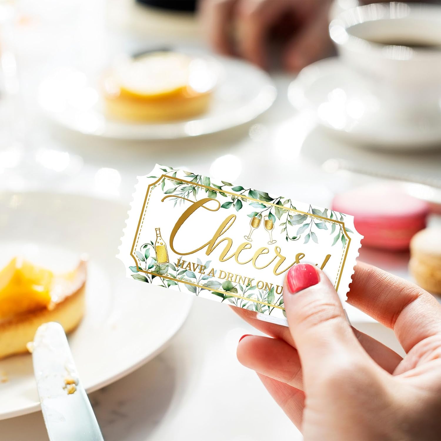 - Considerate design: Our drink tickets roll which feature cocktail glasses and the words "Cheers! HAVE A DRINK ON US”. Add greenery eucalyptus leaves and cocktail patterns as embellishments, the design is clear, the pattern is lovely, can bring an active atmosphere to your events.