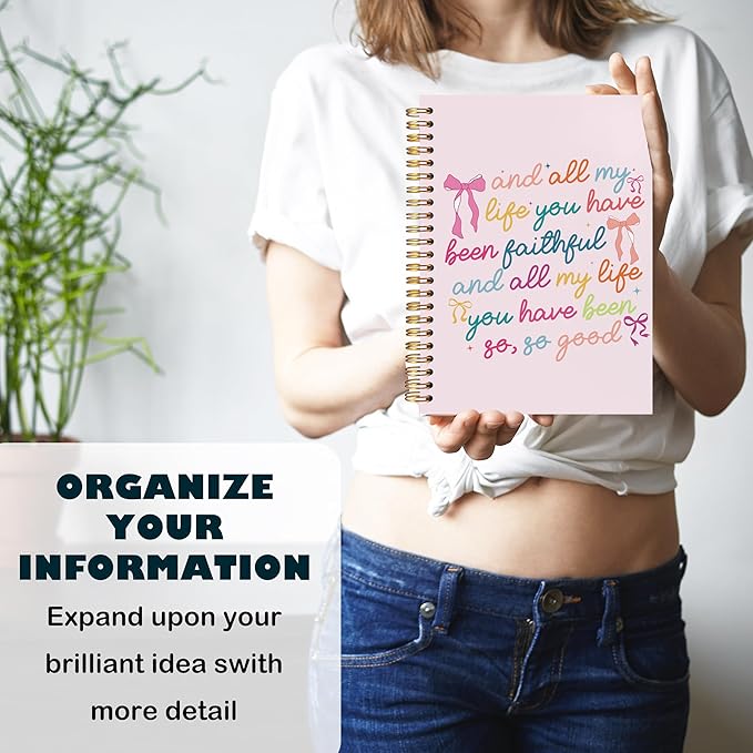 BearCake Coquette Bow Christian Notebook Journal, Religious Journal for Women, Christian Gifts for Women, and all My Life You Have Been Faithful Hardcover Spiral Notebook 5.5x8.3