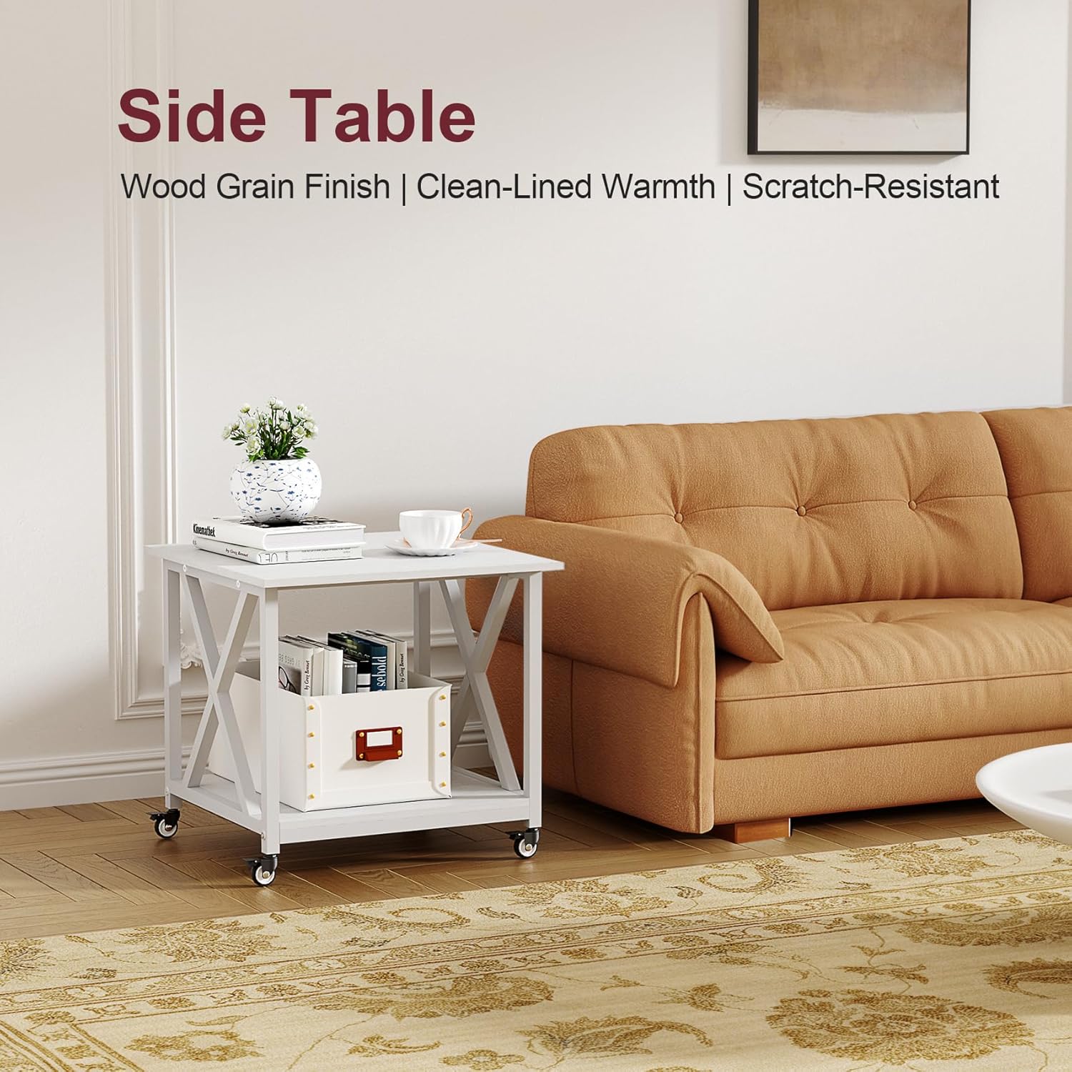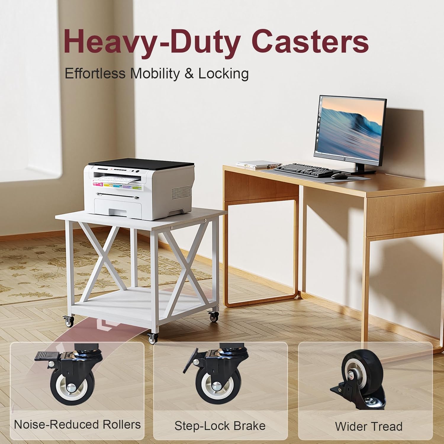 2 Tier White Printer Stand, 23.6 x 23.6 Inches Large Printer Table with Storage Shelf, Rolling Printer Cart with Wheels, Mobile Table for Home Office (White)