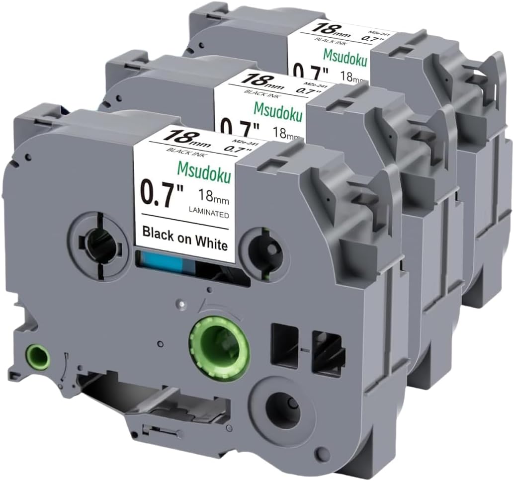 - Package Contain: 3-pack compatible with brother ptouch label maker TZe-241 tape black on white 18mm 0.7 inch TZe241 tape. Size: 3/4 Inch x 26.2 ft ( 18mm x 8m ) Color: Black on White TZe241 TZ-241 Tape