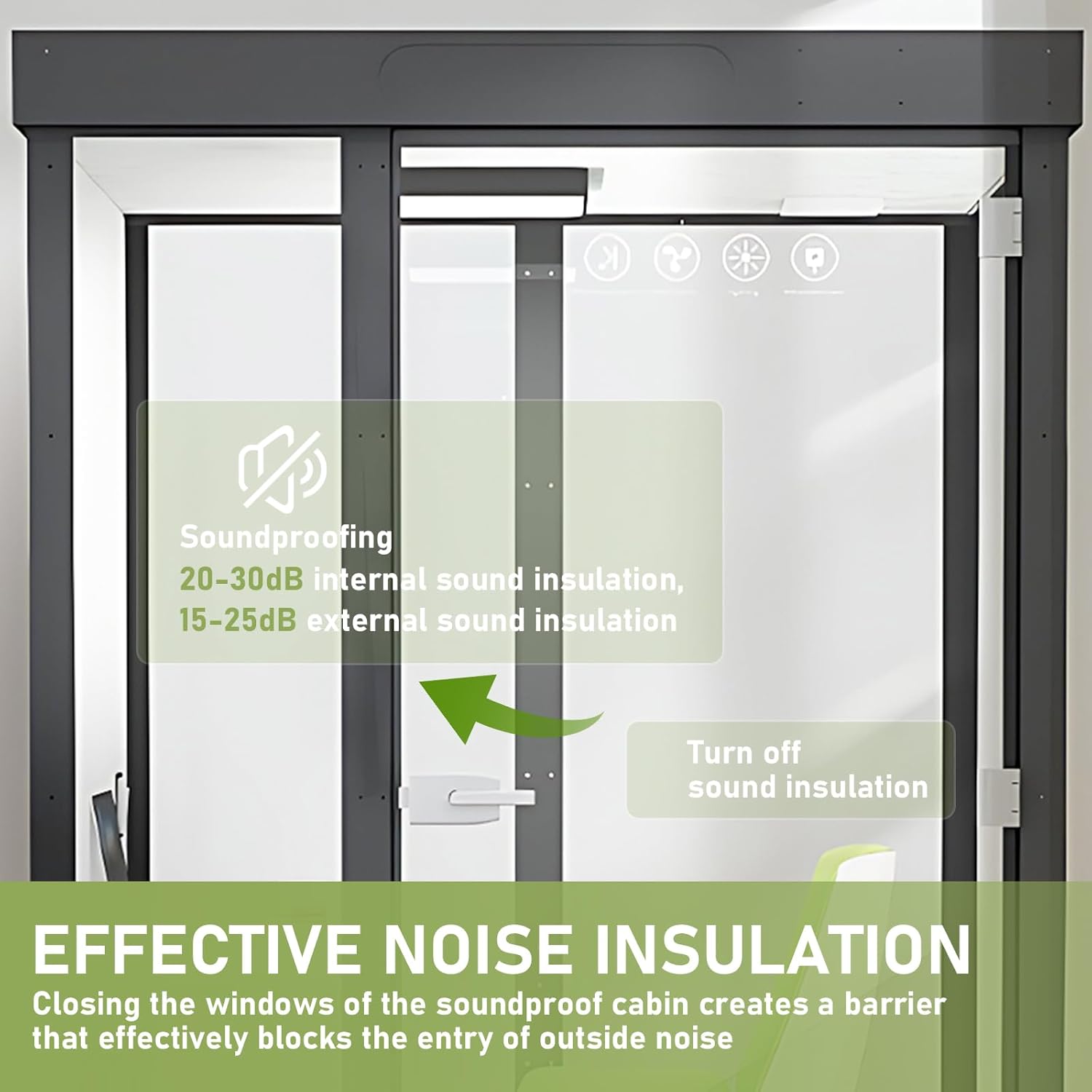 - Excellent Soundproof Structure: The cabin is made of durable sheet metal, the surface is painted with high temperature, and matched with thick tempered glass panels. High-density sound-absorbing felt is also integrated inside to ensure sound insulation