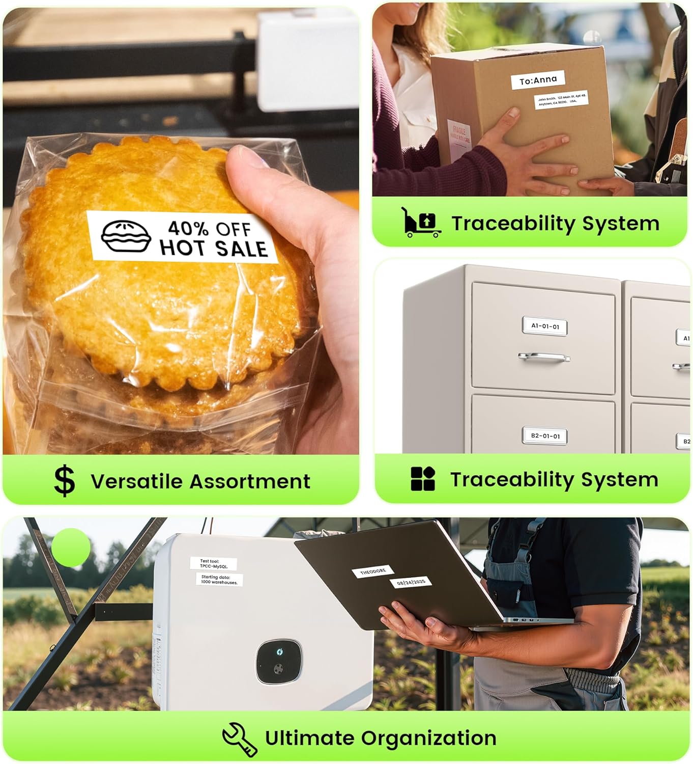- Widely application: Ideal for commercial/industrial labeling: warehouse inventory systems, manufacturing equipment IDs, electrical panel markings, safety signage, tool organization, and logistics tracking