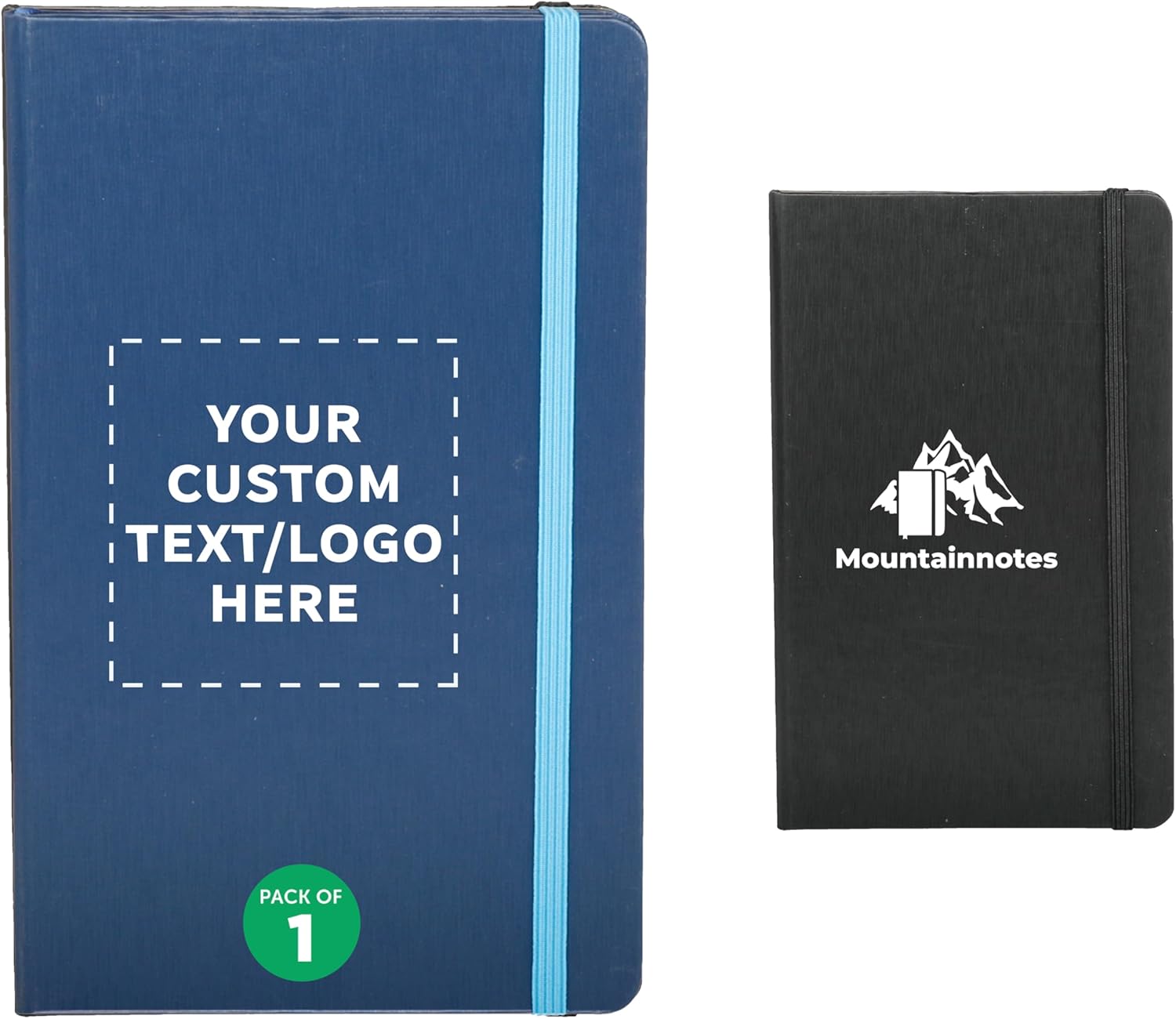 DISCOUNT PROMOS Custom Hardcover Notebook Journals with Elastic Colored Band Set of 1, Personalized Bulk Pack - Perfect for School, Office, Home - Blue