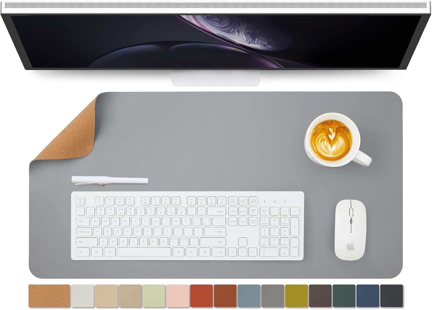 Cork Desk Mat - Dual-Sided Desk Pad for Office and Home - Desk Organization and Accessories - Ideal for Large Mouse Pad and Desk Mats on Top of Desks(Gray,27.6"x 13.8")