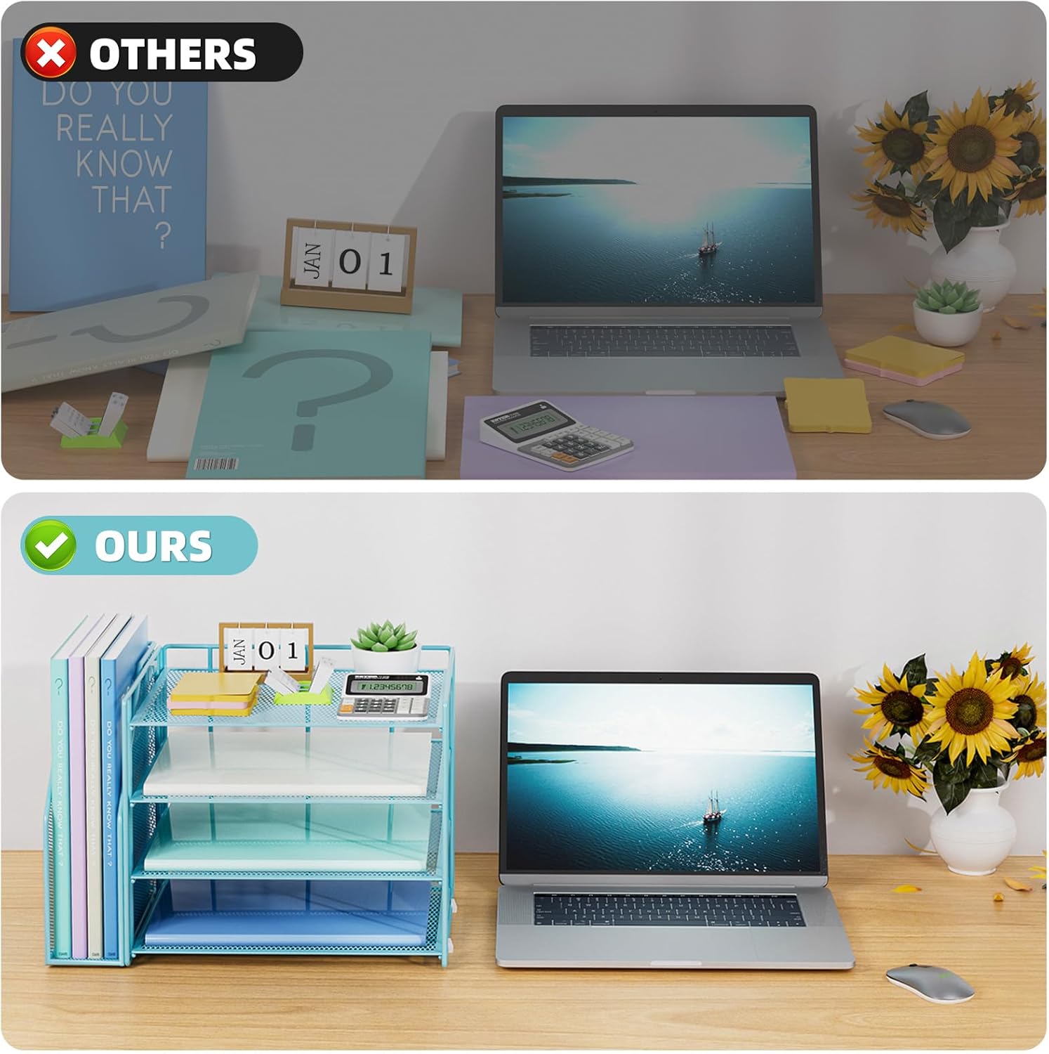 Marbrasse Desk Organizer and Accessories,4-Tier Paper Letter Tray Organizer with File Holder,Desk Accessories & Workspace Desktop Organizers for School Home Office Supplies (Blue)