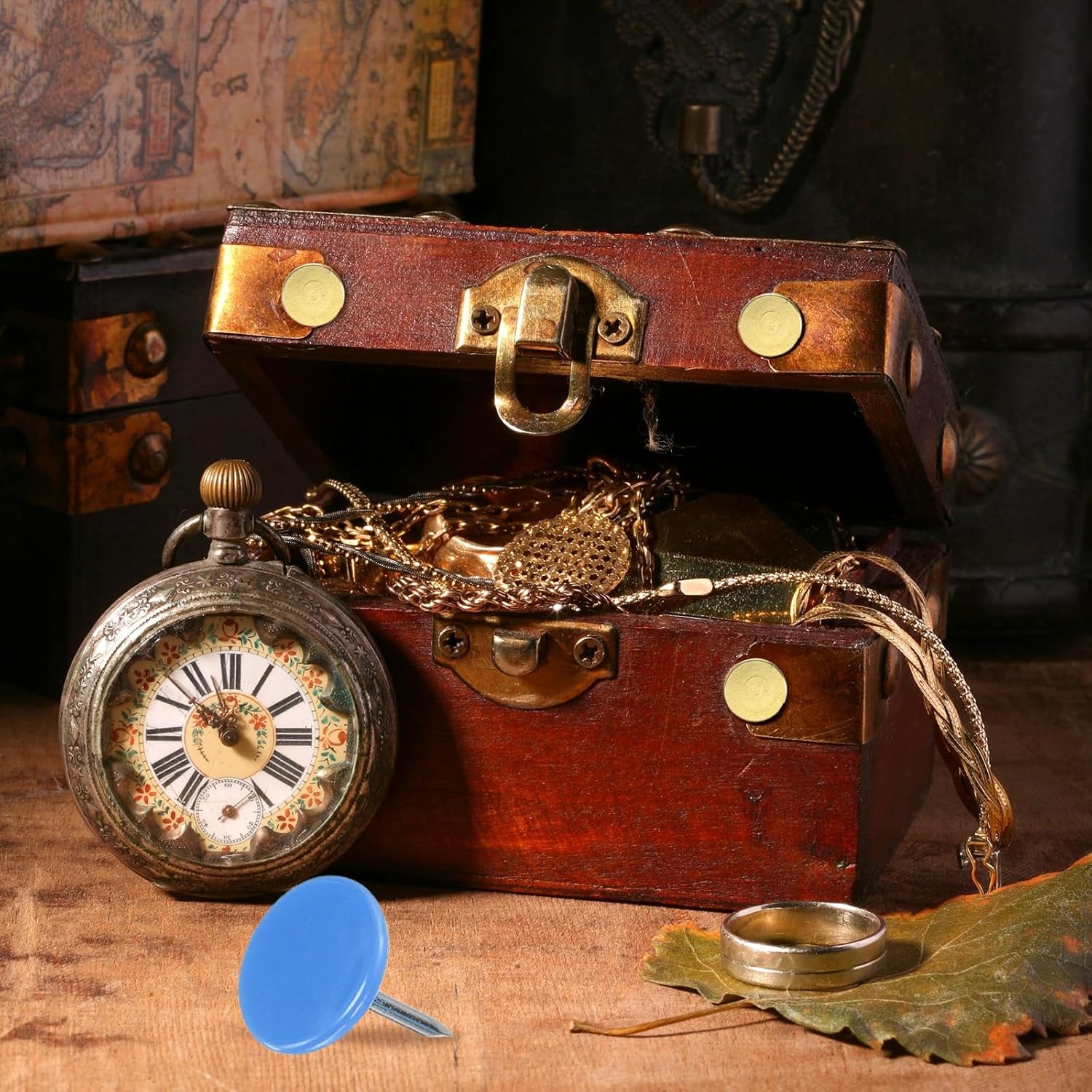 - [Wide Application] - The thumb tacks are both practical and decorative and can be used in a variety of furniture and DIY craft projects. Widely used to decorate furniture such as upholstery, sofas, headboards, chairs, benches, stools, wooden boxes, and can also be used to fix memos, pictures, maps and other lightweight items on cork boards