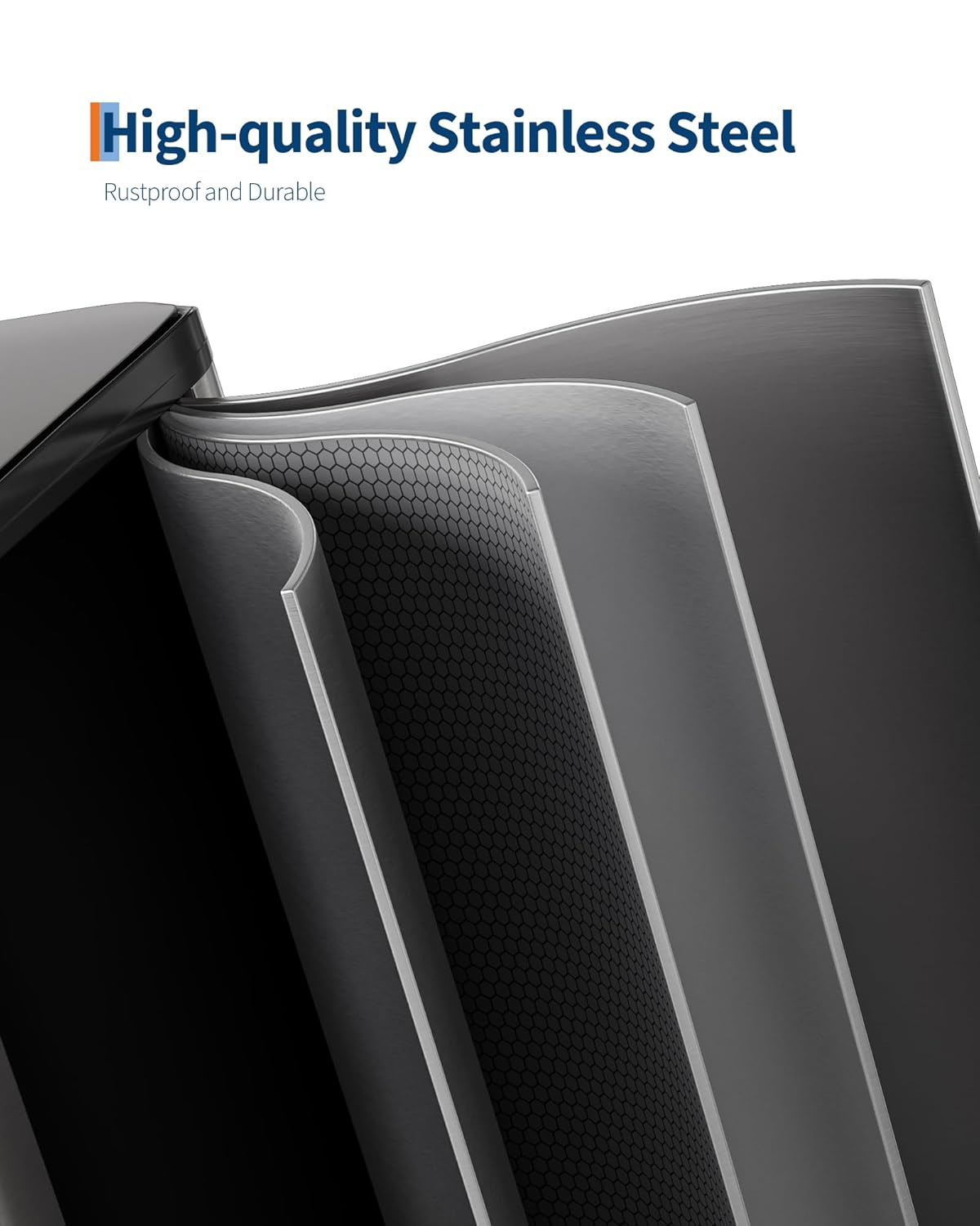 - [HIGH-QUALITY MATERIALS] – GarveeHome stainless steel trash can with lid is engineered for longevity. Its 410-grade ferritic stainless-steel shell delivers rustproof strength, scratch resistance and lasting luster. Two polypropylene inner buckets repel stains, odors and moisture. A thick ABS lid with stainless overlay resists dents; the industrial steel pedal endures 150,000+ steps and the one-piece ABS hinge survives over 300,000 open/close cycles