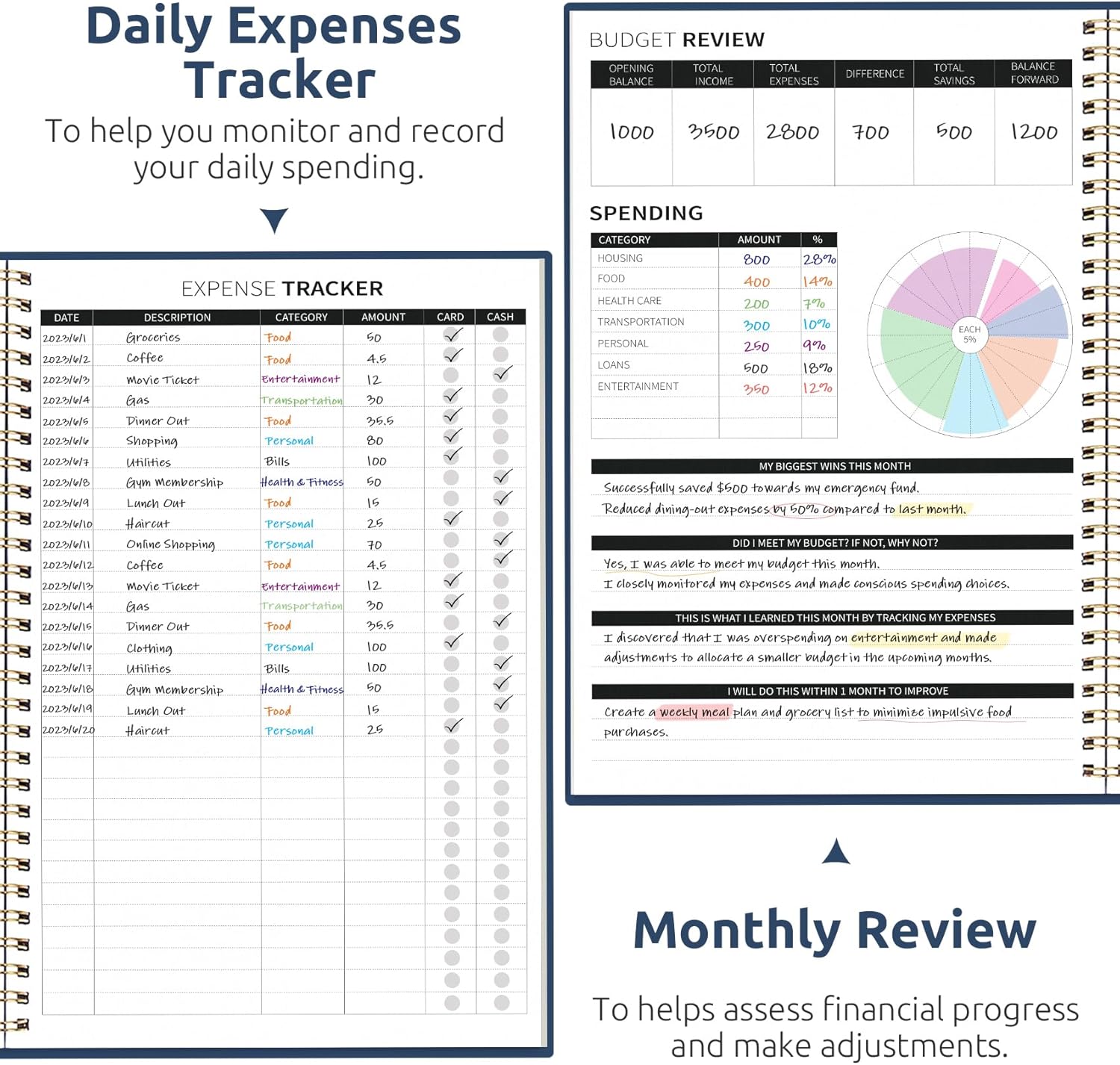 - Reliable and Convenient Design - Our monthly budget planner is designed for your convenience and built to last. The water-resistant cover protects against spills, while the elastic band keeps everything securely in place, and the dual-sided pocket provides extra storage. Experience a budget planner that combines practicality and durability.