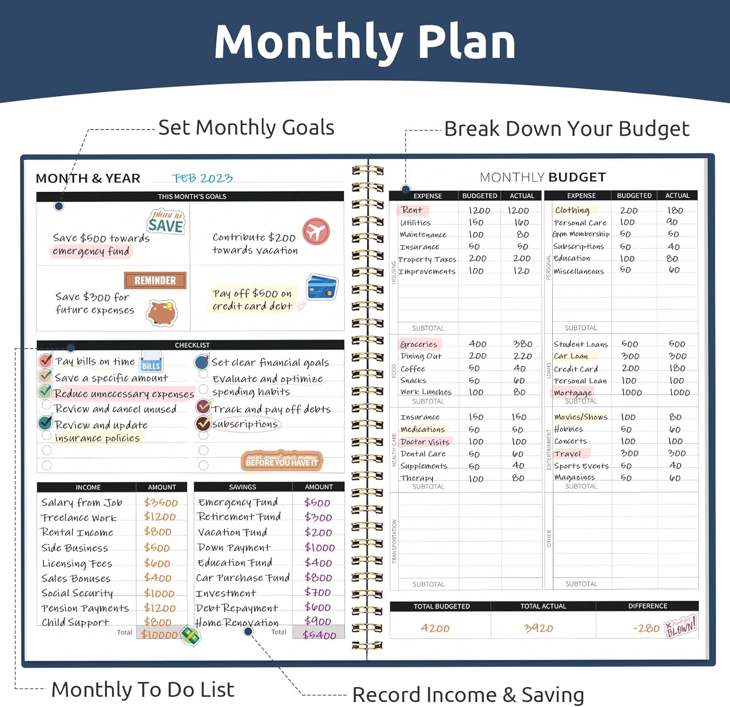 - Full-Page Calendars & Bonus Stickers - Featuring full-page calendars each month, you'll have ample space to mark paydays, bills due, appointments, and important dates. Say goodbye to cramped boxes and difficult writing spaces. Plus, we've included 3 cute sticker sheets that allow you to personalize your financial organizer and make budgeting more fun.
