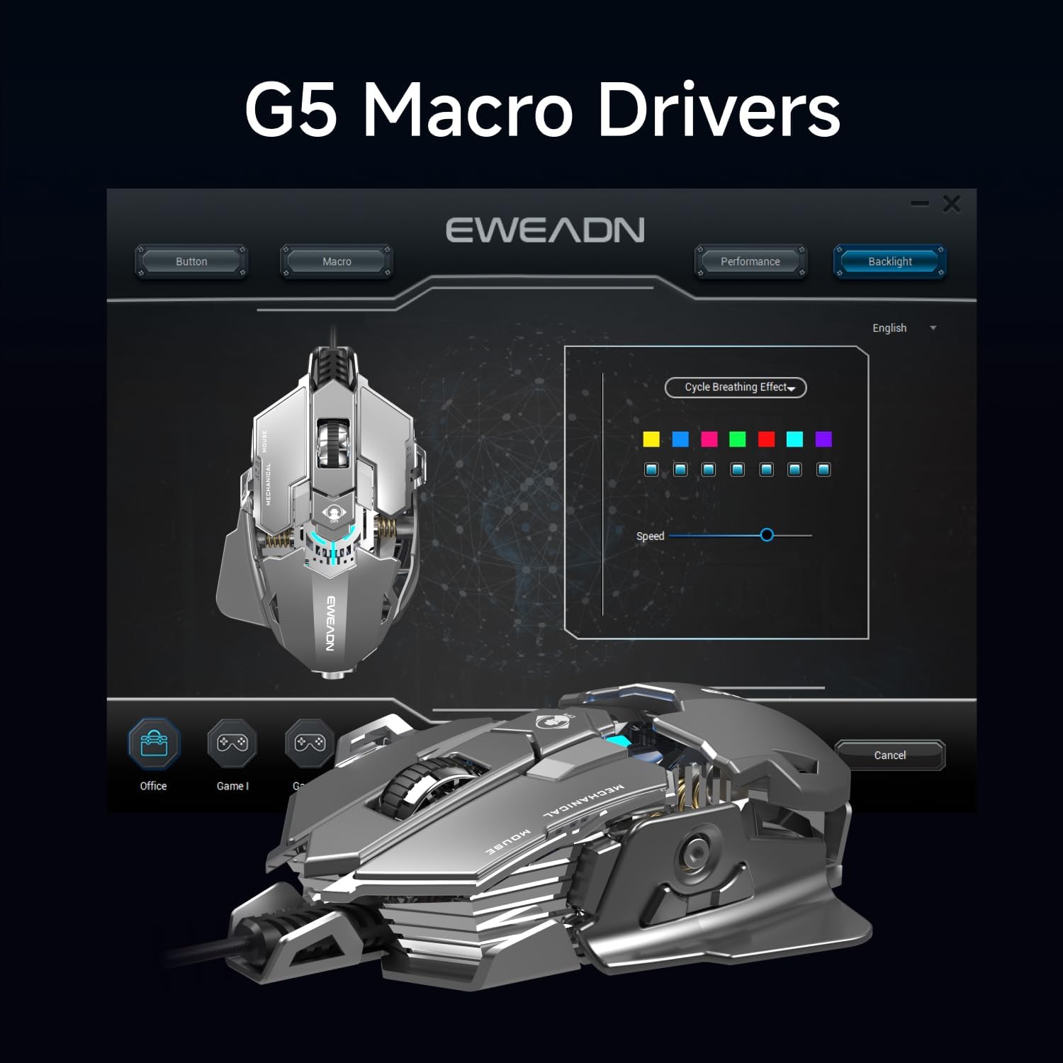 - 6-Level Adjustable DPI: The EWEADN G5 computer mouse features up to 12,800 DPI with 6 adjustable levels and an ultra-fast report rate (125–1000Hz), meeting your multiple needs, either for daily work or gaming. Dedicated demand for DPI options between 2000-12800 is available to be processed by software.