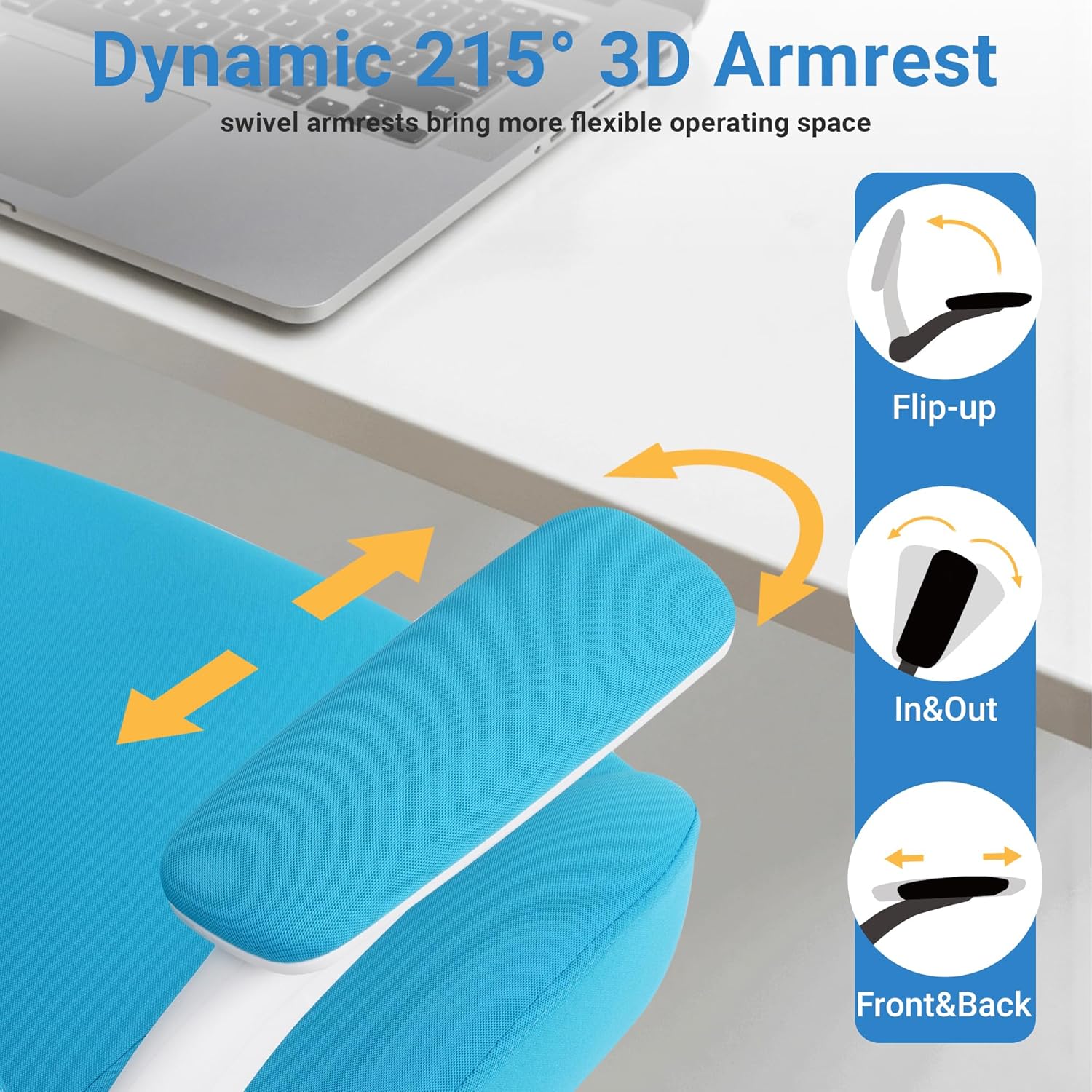 HYLONE Heavy Duty Office Chair, 5" Thickened Seat Ergonomic Desk Chair with Adjustable Armrests, Home Office Computer Chairs for Long Hours Mesh Executive Chair(Blue)