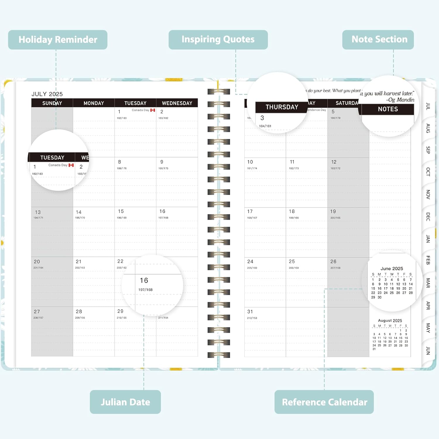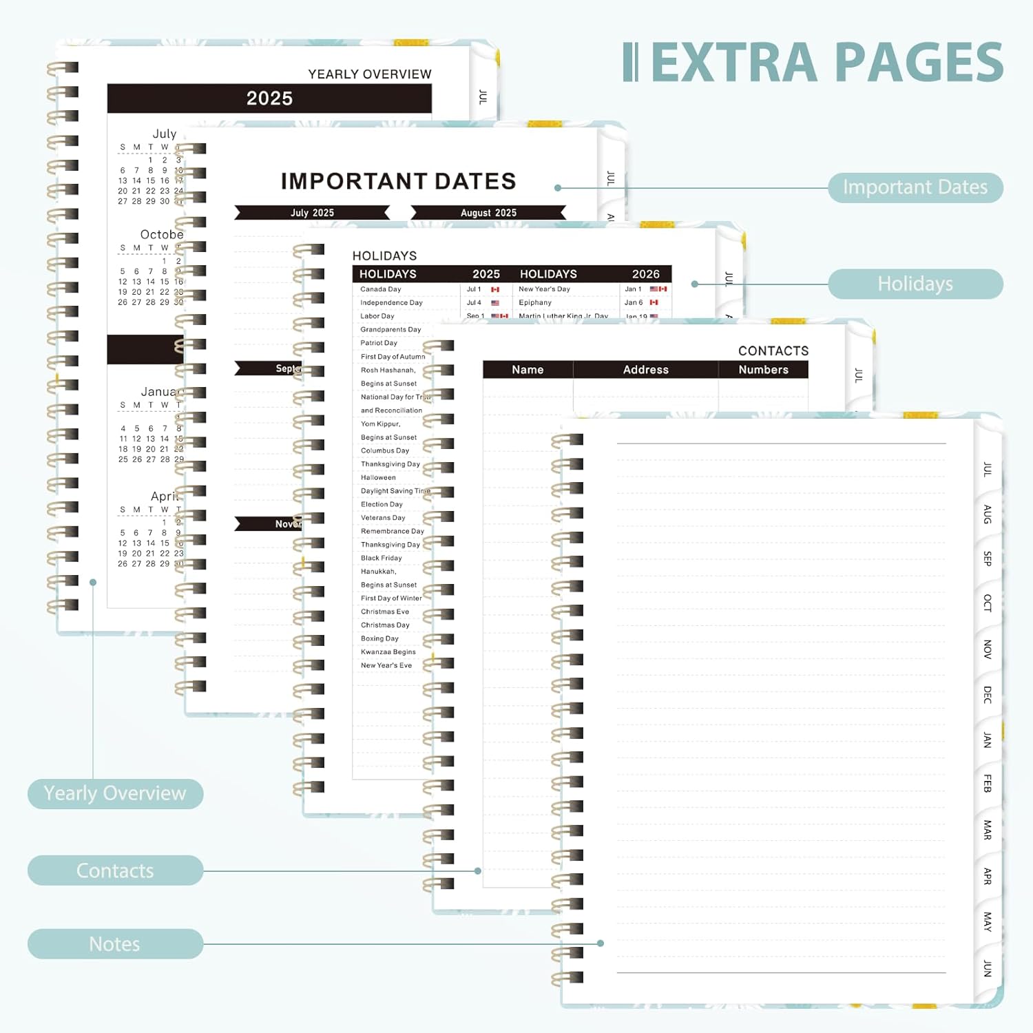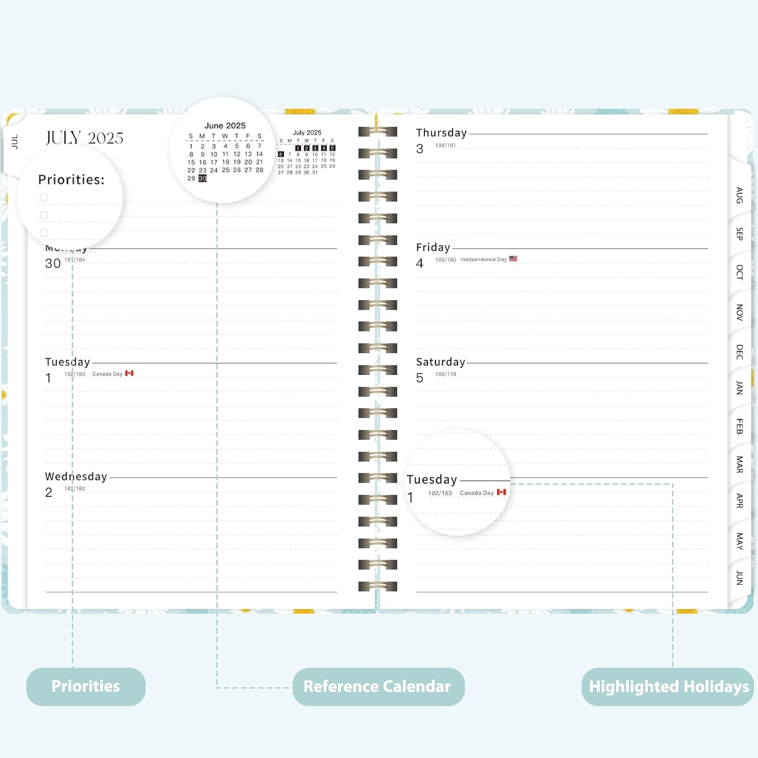 - [COMPREHENSIVE PLANNING] – This Planner 2025-2026 covers12 months from July 2025 to June 2026. It includes monthly and weekly calendar pages, providing ample room to track exams, meetings and important events - making it a useful organizational tool for your entire academic or work year.