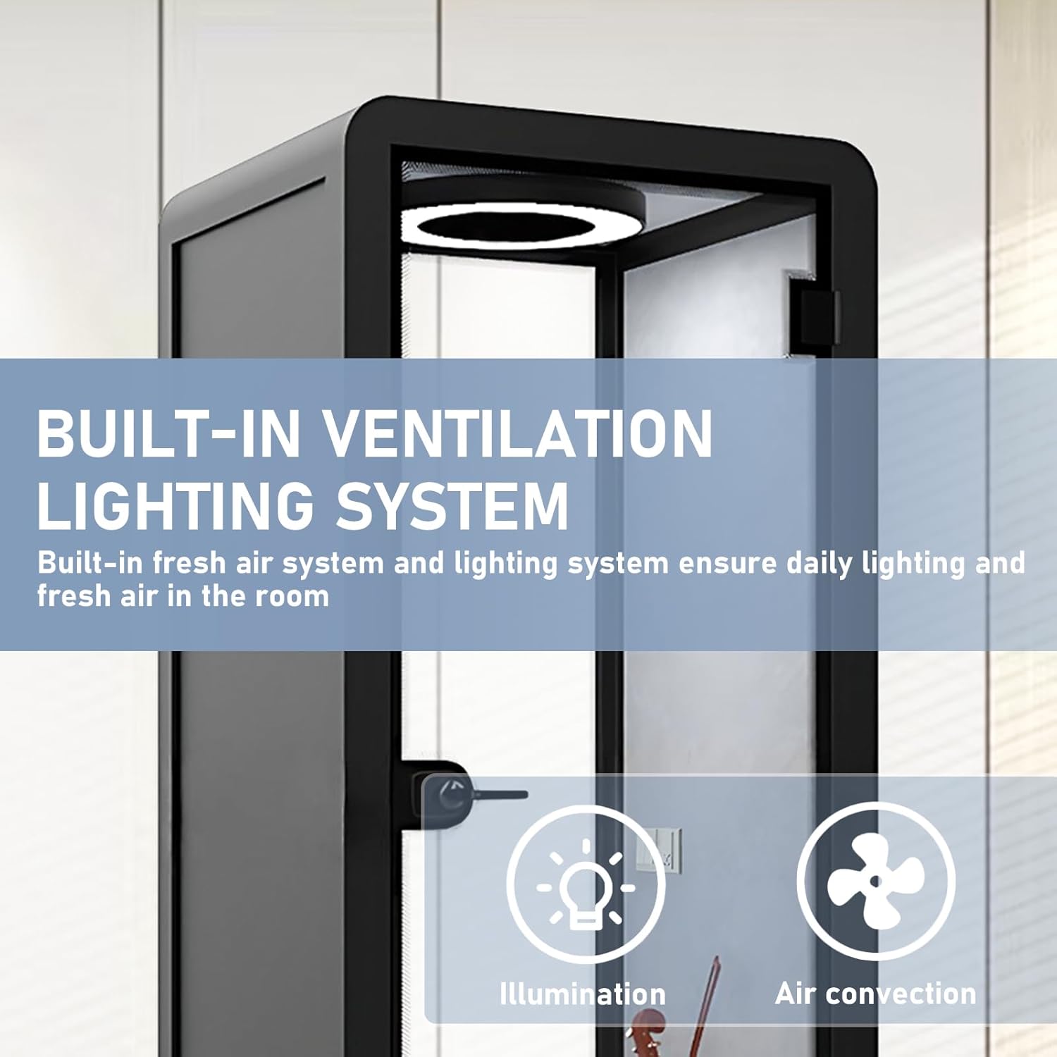 Office Sound Booth with Audio Privacy - Modern Soundproof Booth Includes Black Frame Design,Simple Soundproof Room with Light, Socket,Casters for Office,Telephone (39.37IN)