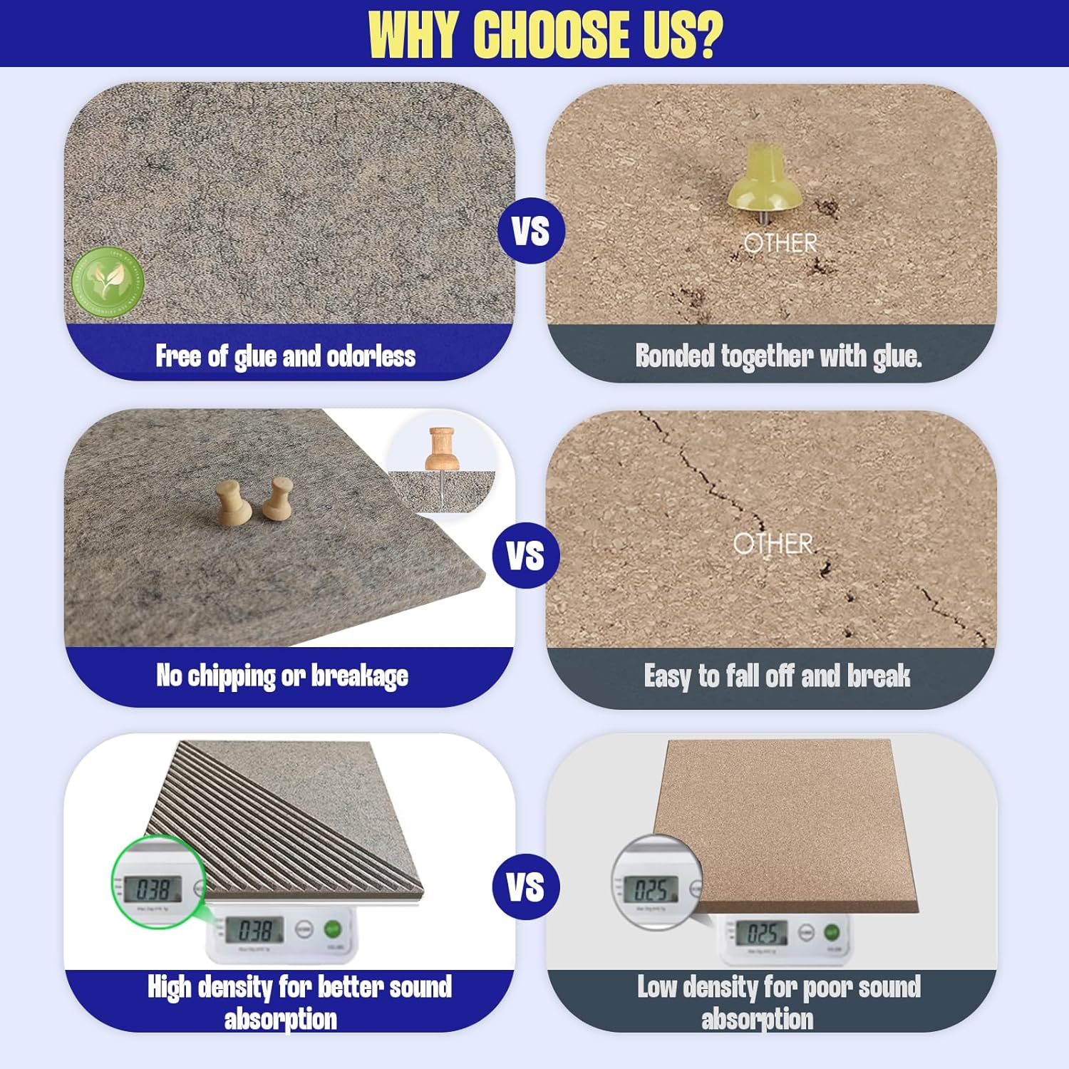- Sound Absorption: The dense felt cork board helps absorb sound, making it an excellent choice for reducing noise and enhancing acoustics in your office, studio, or home office space