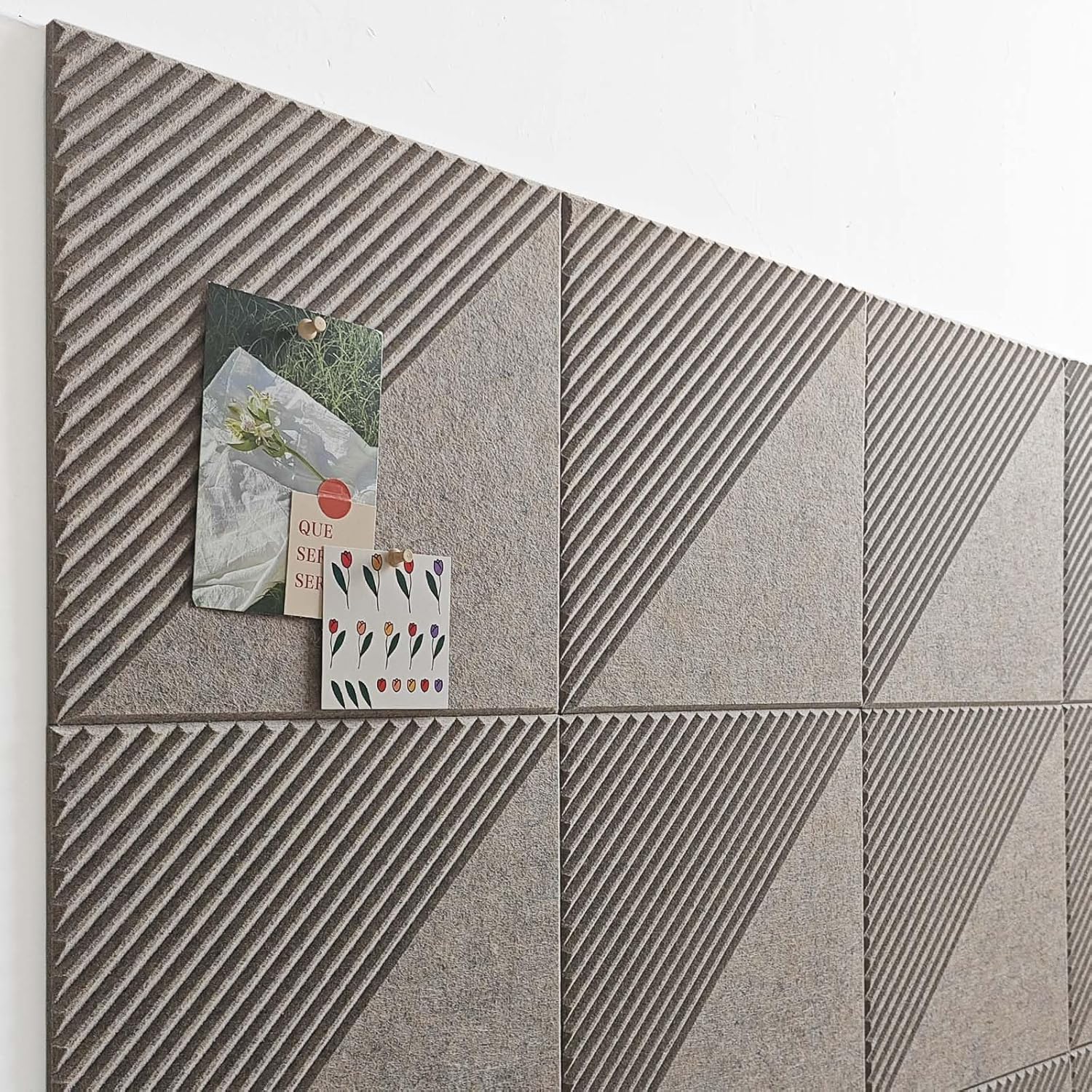 - Sleek and Stylish Design: Featuring a unique slant groove pattern, these felt panels provide a modern and textured aesthetic that enhances any space.Comes with 35 clear pushpins for quick pinning of notes, photos, and reminders