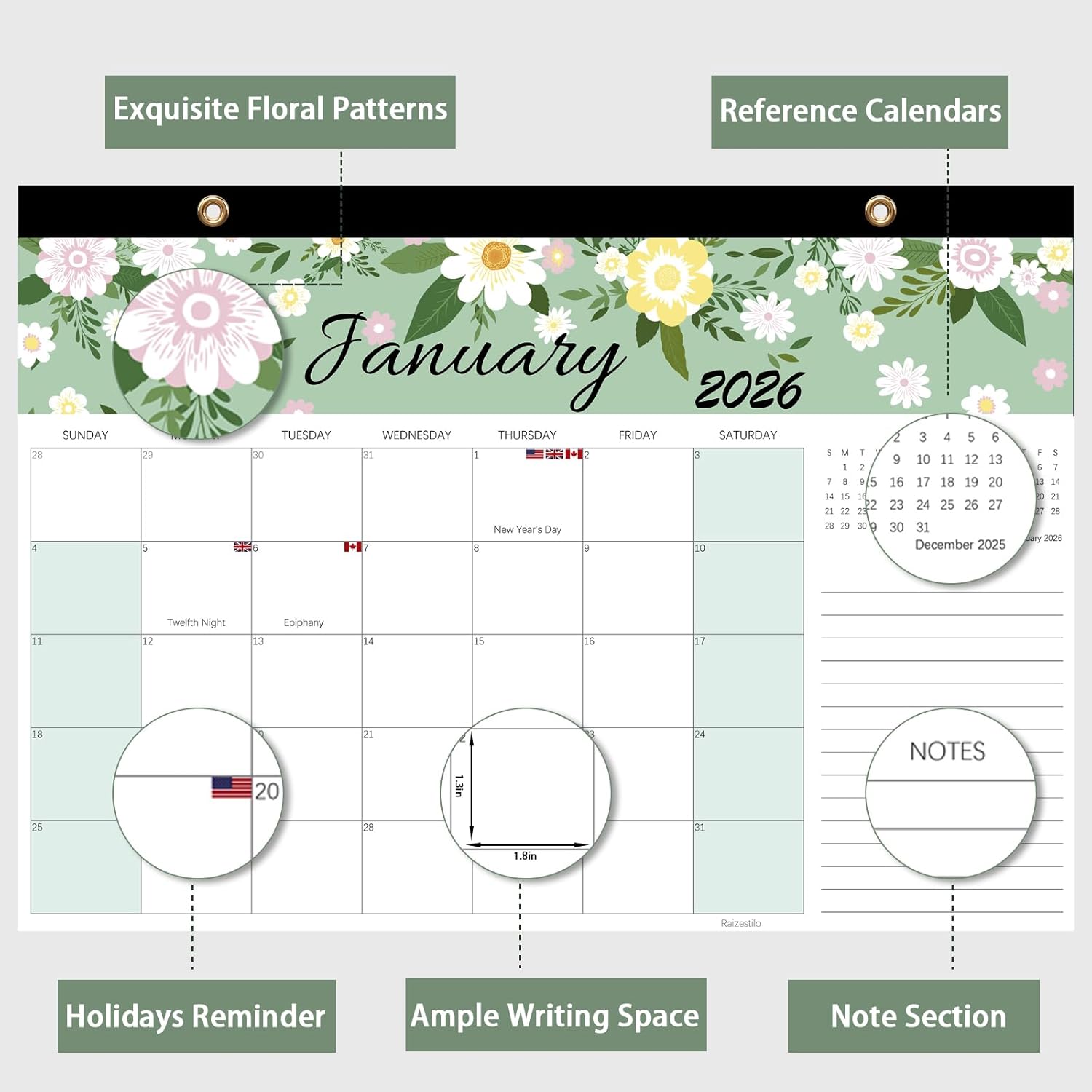 - Dual-Function Design: Desk or Wall Use— Transition seamlessly between desktop and wall display! The large calendar 2025-2026 includes pre-punched holes and a detachable hanging cord, offering flexible placement. Perfect as a desk calendar 2025-2026 for office use or an eye-catching wall calendar for home decor.