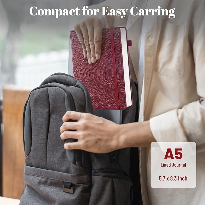 - ๐๐๐ ๐๐ง ๐๐๐๐ญ๐ก๐๐ซ ๐๐จ๐ฎ๐ง๐ ๐๐จ๐ฎ๐ซ๐ง๐๐ฅ:The cover features a tree growth ring pattern, lightly embossed onto cruelty-free vegan leather. The textured cover adds visual interest and sets it apart from plain designs. The tree ring pattern represents personal growth, accomplishments, and the challenges along the way. 5.7 ร 8.3 inches, compact and easy to carry