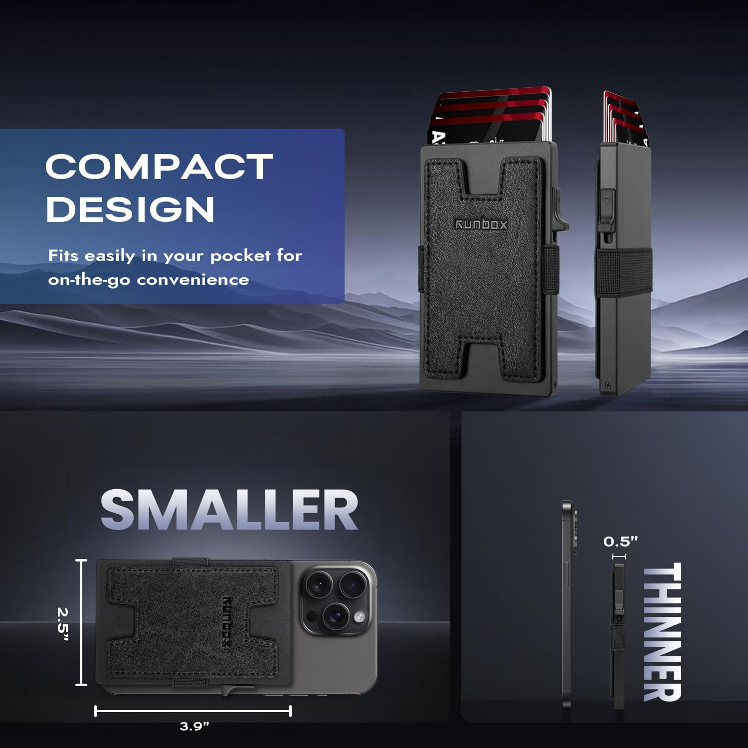- Quick Access & Expandable Capacity (Holds 1-12 Cards): Experience effortless card access with our patented pop-up button mechanism – press to instantly eject cards. The main aluminum card holder compartment holds 4-6 cards(depending on embossed designs), while the expandable metal backplate adds 6-8 extra slots. *Total capacity varies with card thickness