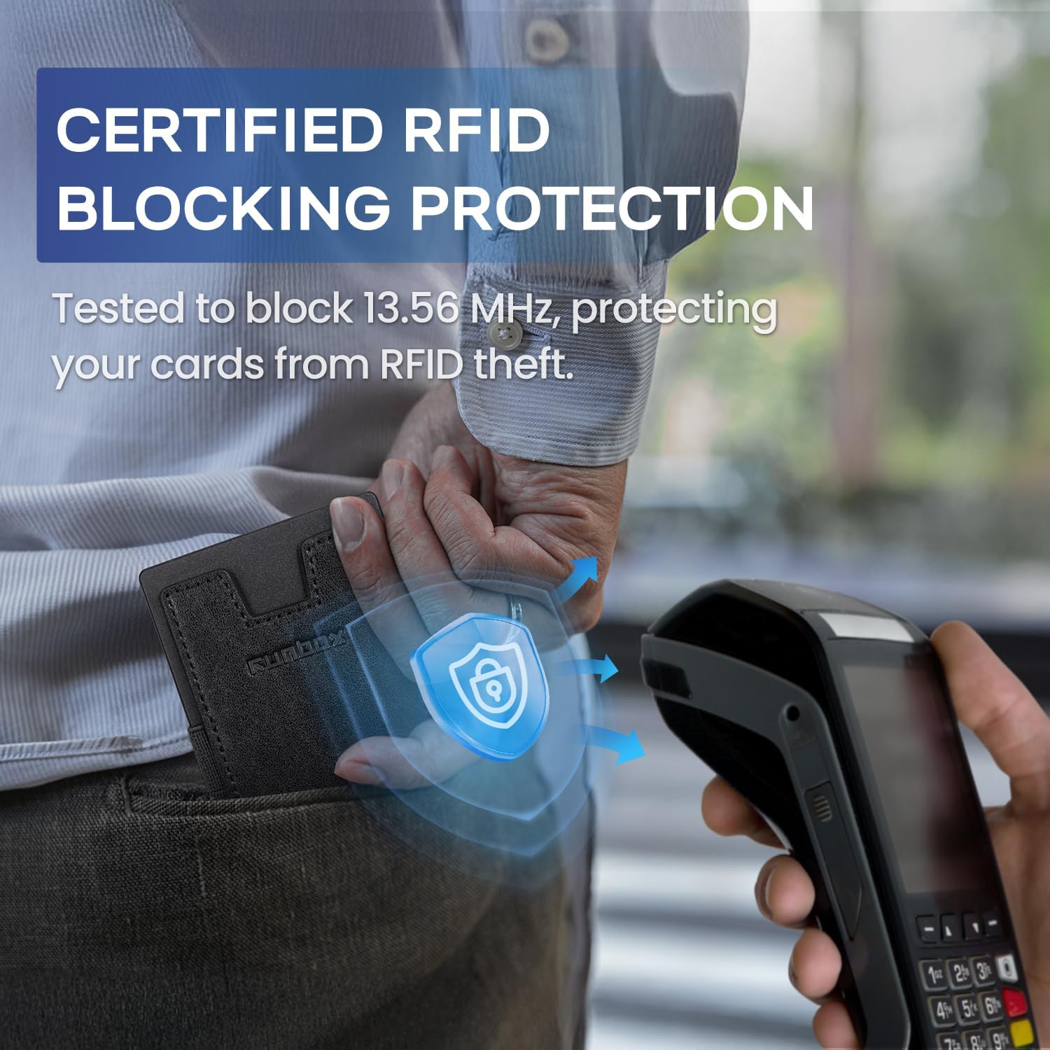 - Military-Grade RFID/NFC Protection: Built with solid aluminum shielding, this smart wallet blocks 13.56MHz signals to prevent digital theft. Safeguard credit cards and IDs from skimming devices – your data stays secure