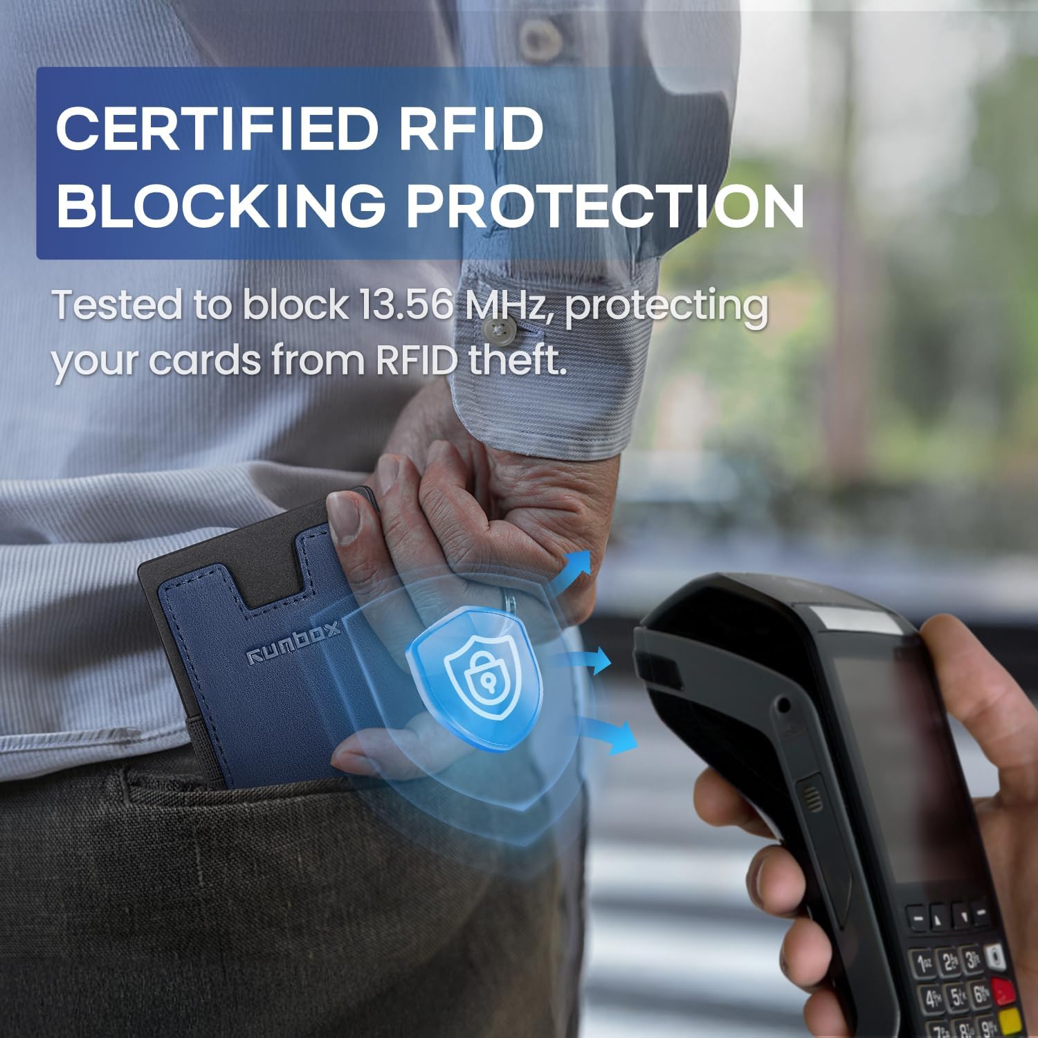 - Military-Grade RFID/NFC Protection: Built with solid aluminum shielding, this smart wallet blocks 13.56MHz signals to prevent digital theft. Safeguard credit cards and IDs from skimming devices – your data stays secure