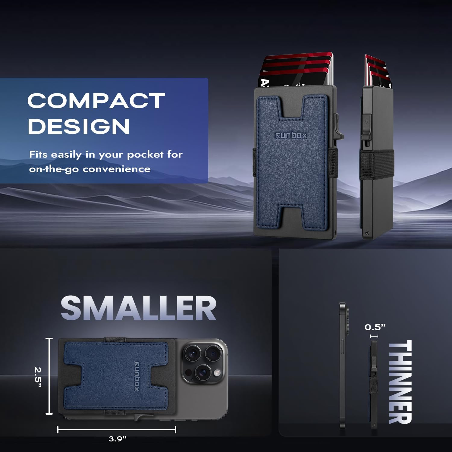 - Quick Access & Expandable Capacity (Holds 1-12 Cards): Experience effortless card access with our patented pop-up button mechanism – press to instantly eject cards. The main aluminum card holder compartment holds 4-6 cards(depending on embossed designs), while the expandable metal backplate adds 6-8 extra slots. *Total capacity varies with card thickness