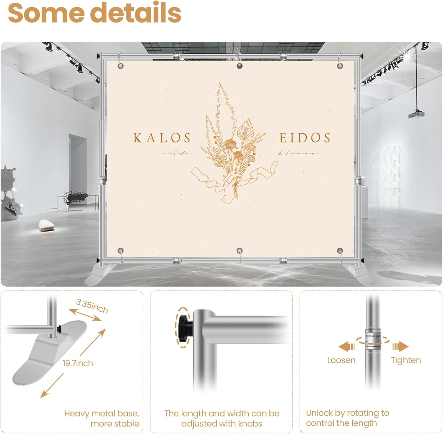 - 【Adjustable Frame】: The telescopic banner stand is suitable for multiple size, They are all telescopic and can be infinitely adjusted to match the size you need, Height adjustable (Min 3.4ft - Max 10ft), width adjustable (Min 6.2ft - Max 10ft).