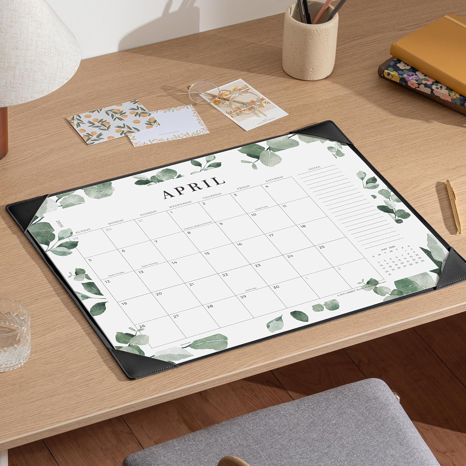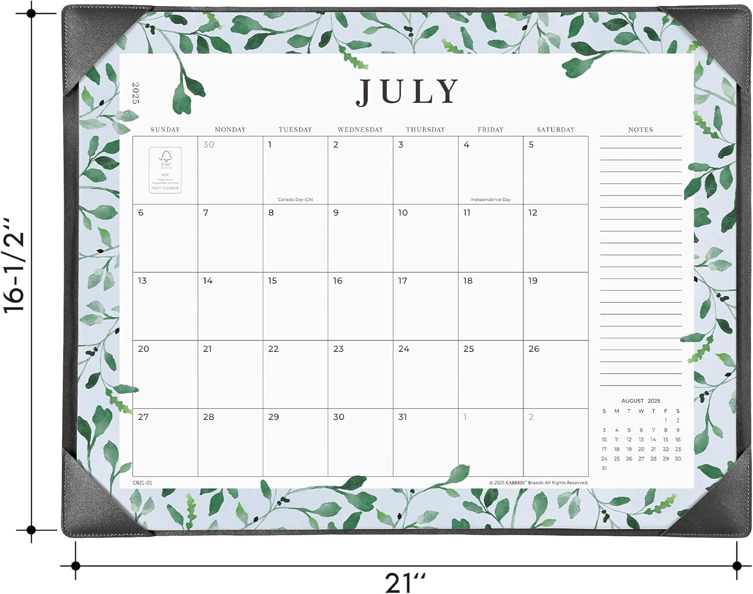 Cabbrix Desk Calendar 2025-2026 with Desktop Mat, 21" x 16.5" Large Desk Calendar July 2025 to December 2026, 18 Months Calendar for Home Office School Planning, Greenery