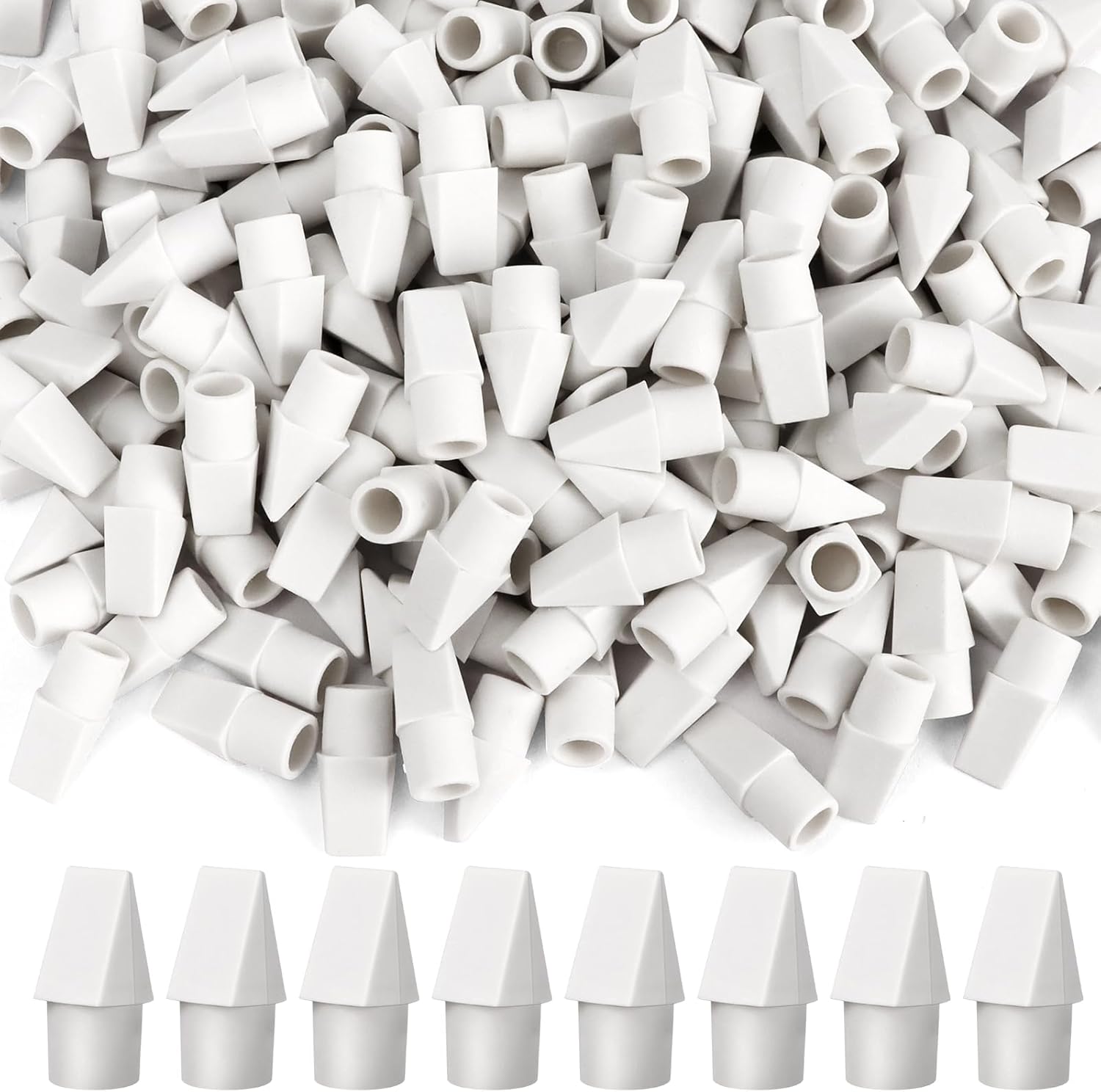PRALB 200PCS Grayish White Pencil Top Eraser Caps - Compact Bullet Tip Erasers for Home, School & Office Essentials