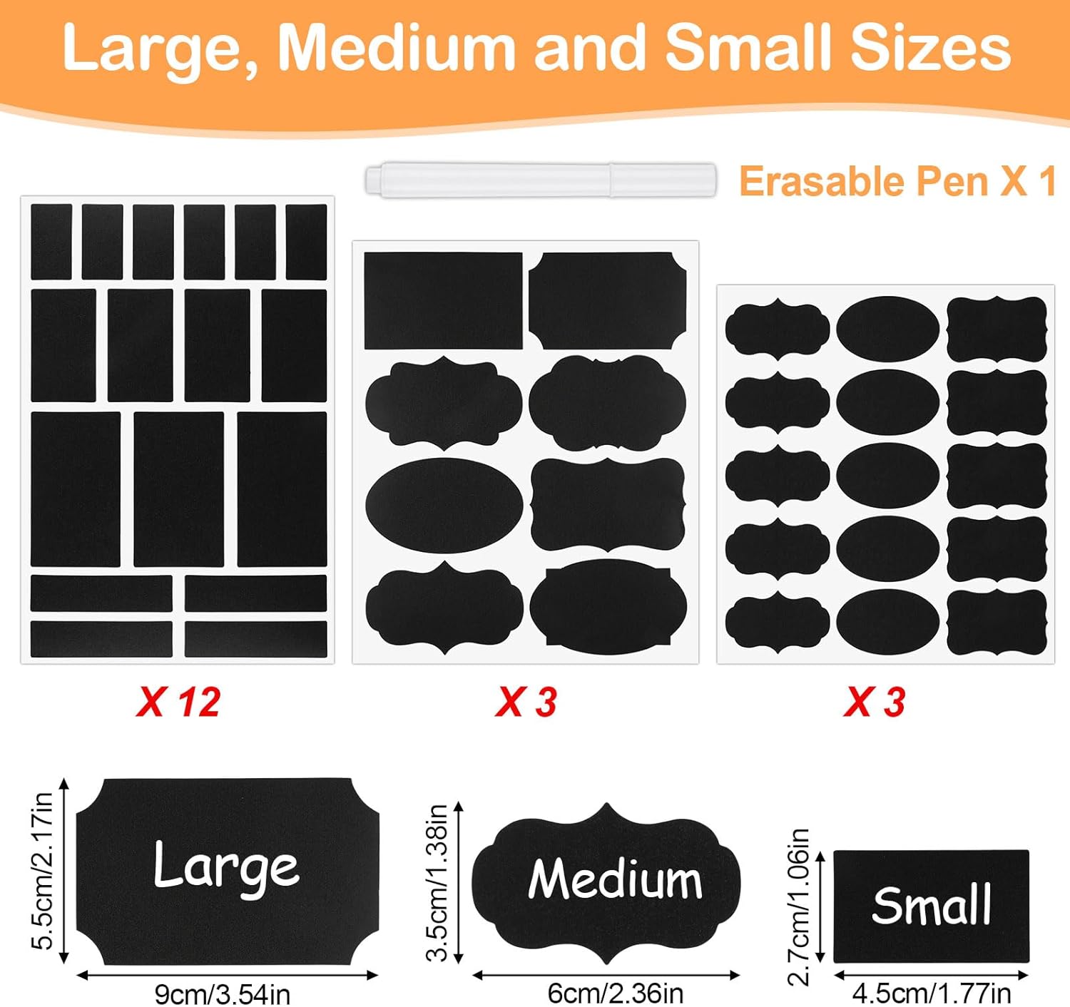 - Blackboard Sticker Set: You will receive 18 sheets in 3 sizes and multiple shapes (oval, square, heterosexual, etc.), a total of 273 pcs, suitable for various containers such as jars, spice bottles, glass jars, storage boxes, etc
