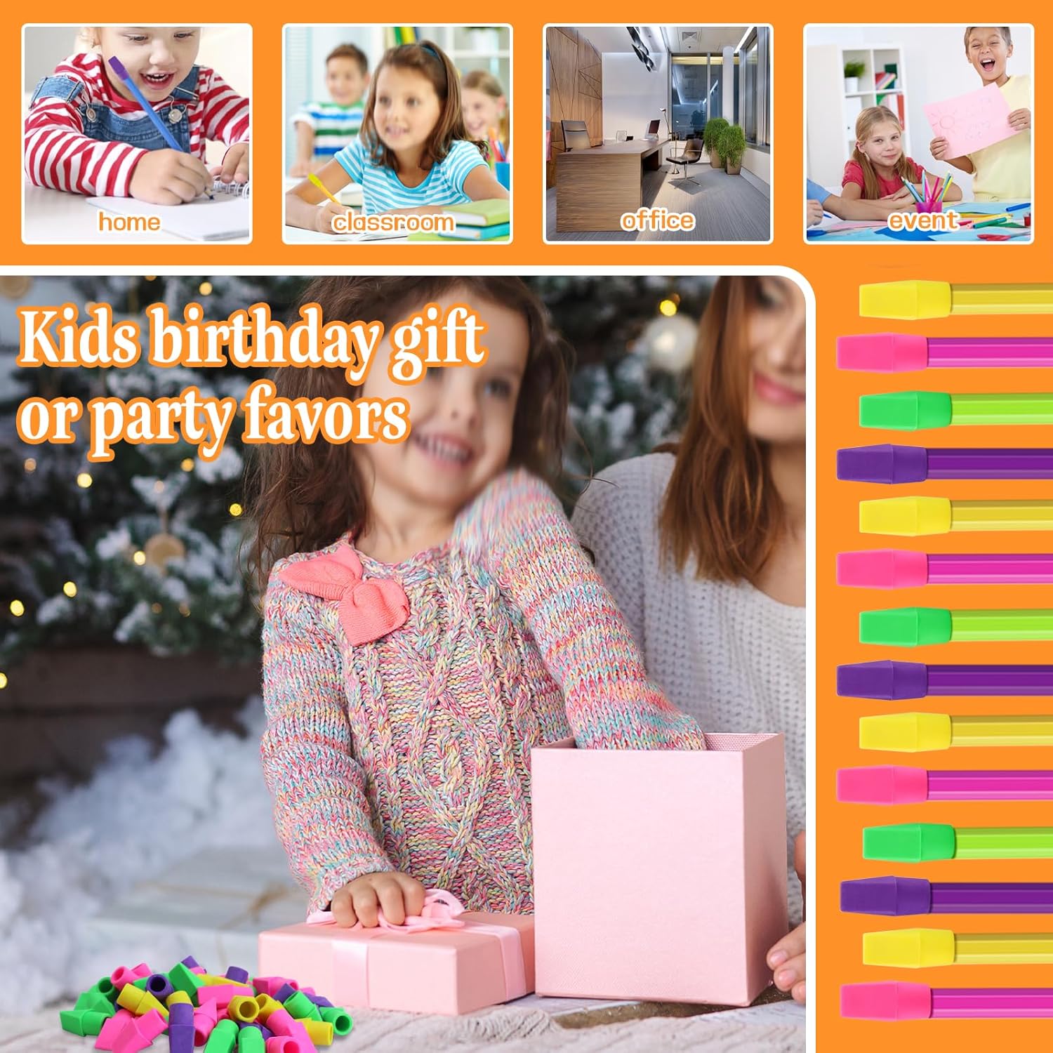 - Vibrant 4-Color Mix:Includes 50 erasers each in pink, purple, green, and yellow, adding a lively touch to your stationery collection and making it easy to color-code tasks.