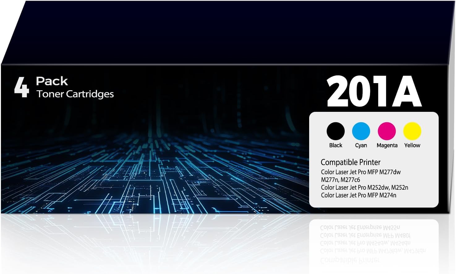 - Compatible Printer: The 201A toner cartridges 4 Pack compatible with HP Color Laser Jet Pro MFP M277dw M277c6 M277n, Color Laser Jet Pro M252dw M252n printers.