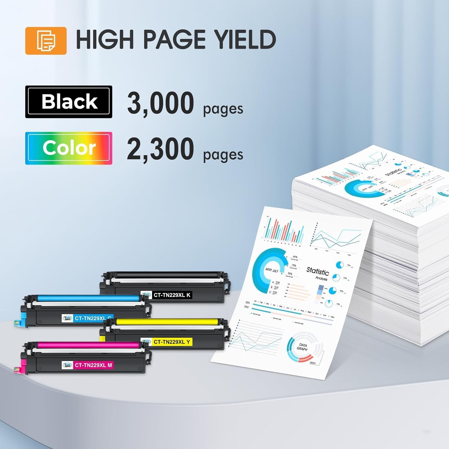 - Page Yield: 3,000 pages for TN229XL TN 229XL black toner and 2,300 pages for each TN229XL color toner (Letter/A4, at 5% coverage)