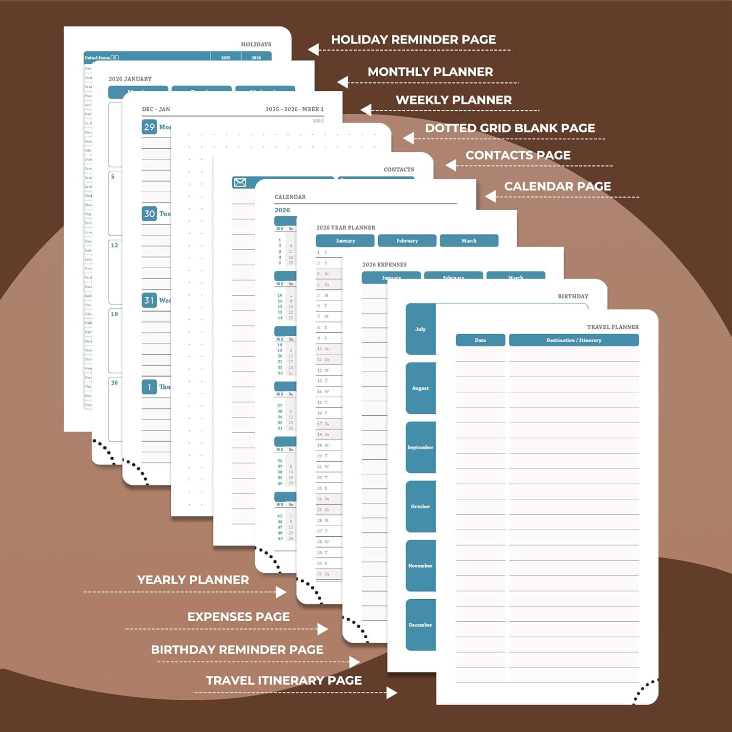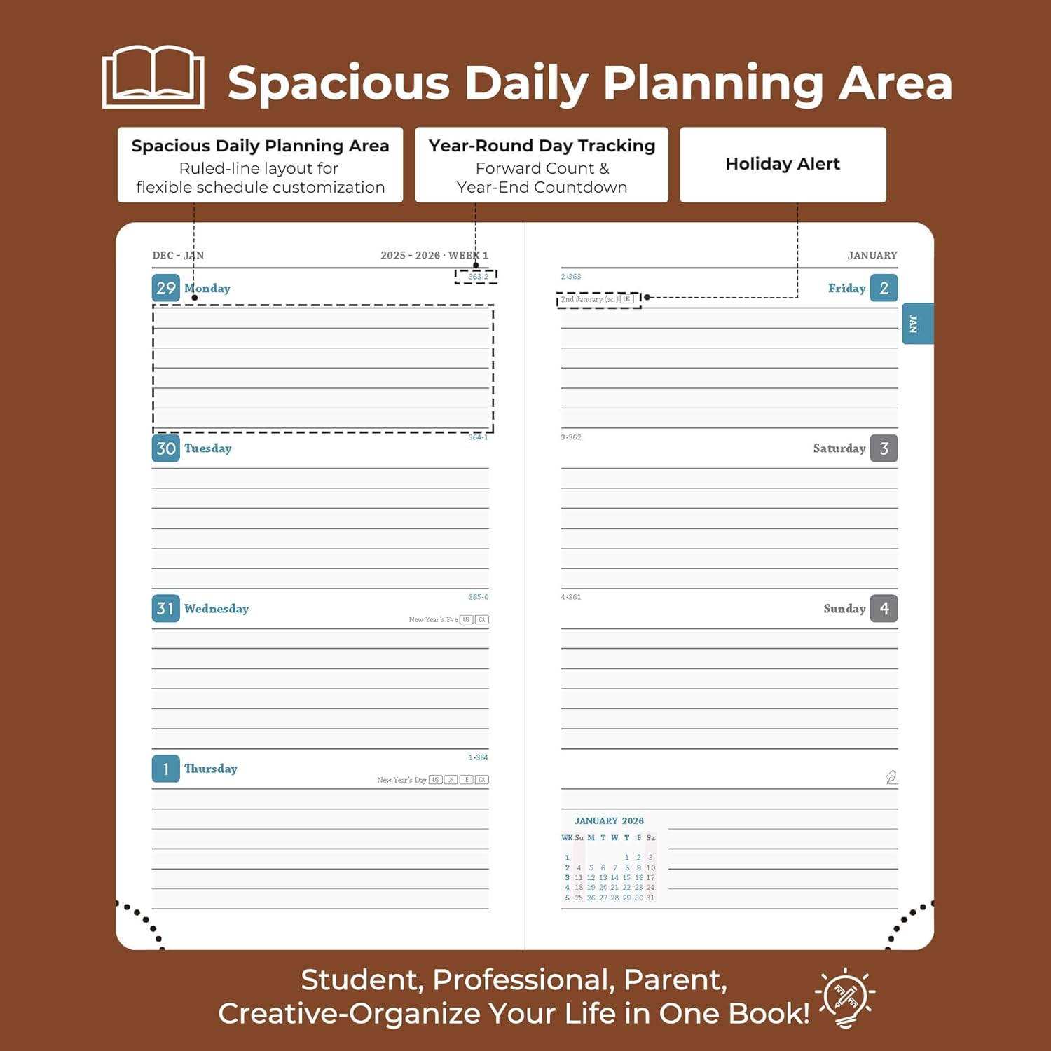- Professional Grade Material for Your Daily Planner: Crafted with FSC 100GSM thick paper, this 2026 planner ensures good writing with markers while gentle on your eyes through its ivory white pages. The leather soft cover and lay flat binding make it a calendar planner companion for busy professionals, students, and families