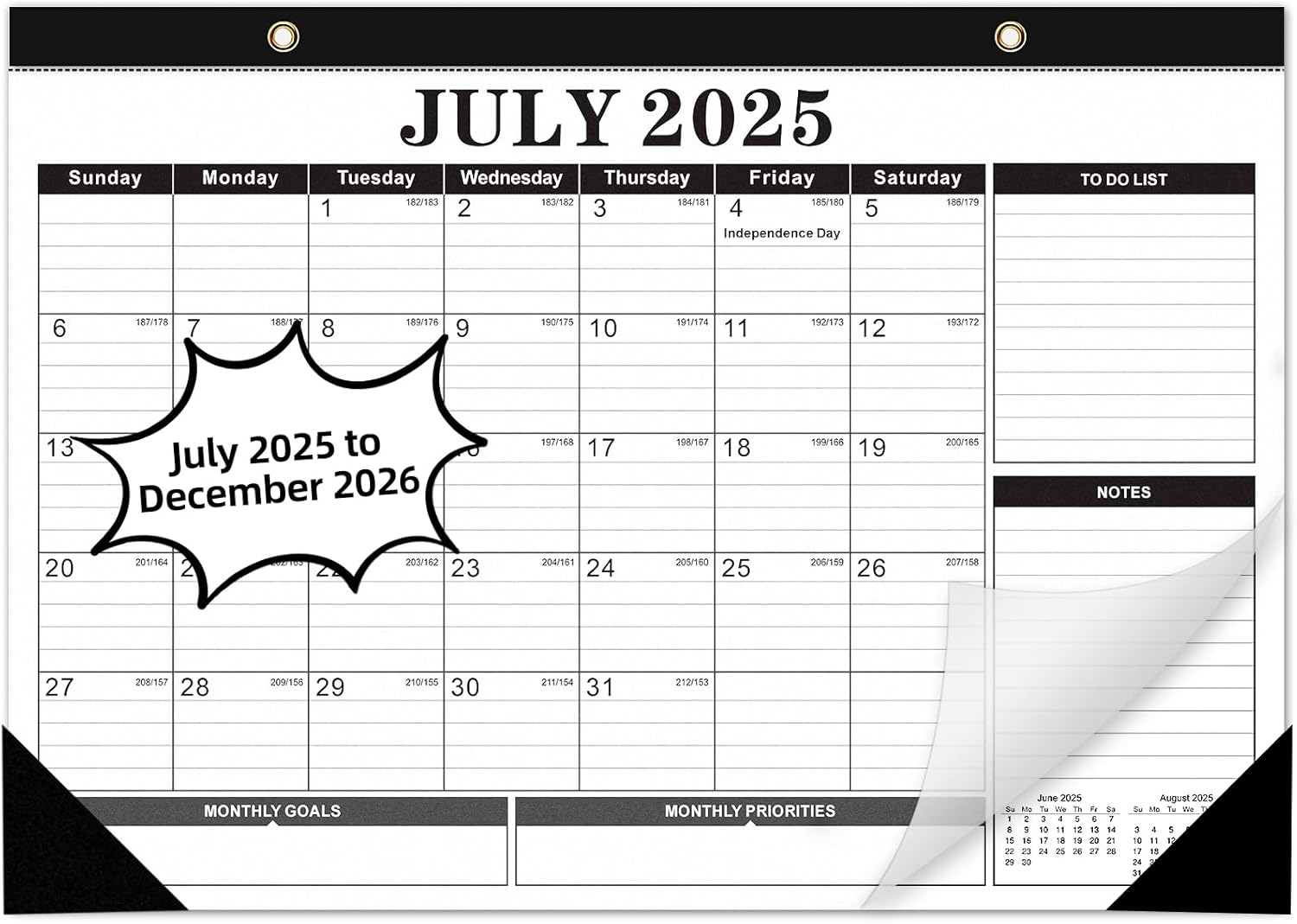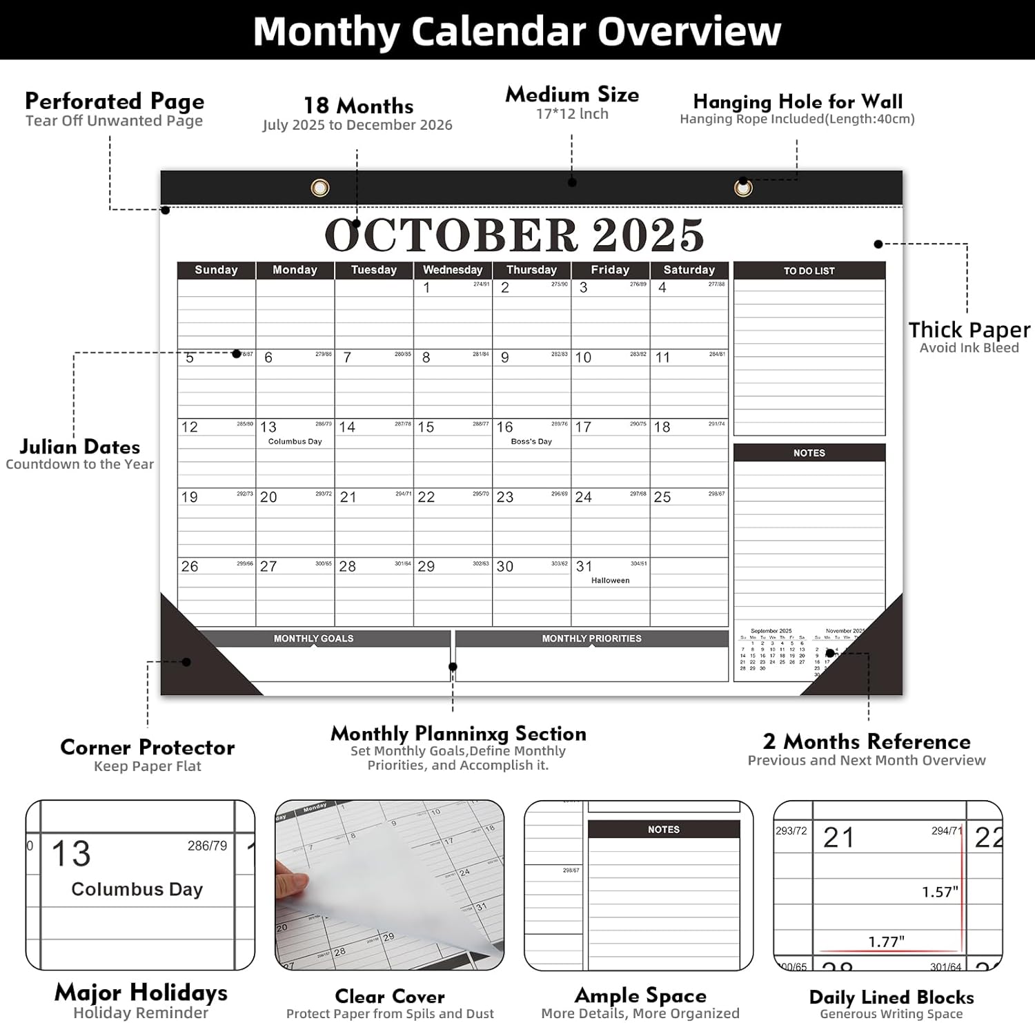 - Clear Waterproof Cover & Corners Protector: Our 2025 - 2026 calendar with a waterproof transparent cover and protector corners to protect the pages from spills and dirt, can keep for a long time use. Two sturdy hanging points + included rope let you hang it anywhere—use vertically as a wall calendar or flat as a desk calendar.