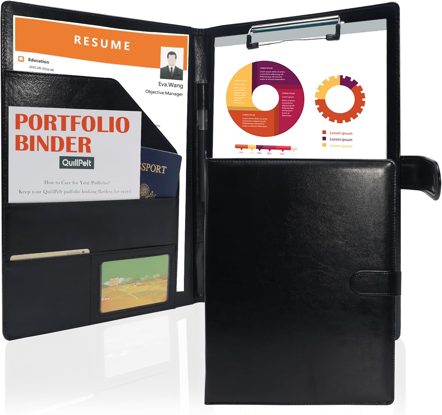 PU Leather Portfolio Binder, Professional Padfolio with Clipboard, Legal Pad Holder for A4 Letter Size Notepad, Resume Portfolio Folder for Business School Office Conference(Black)