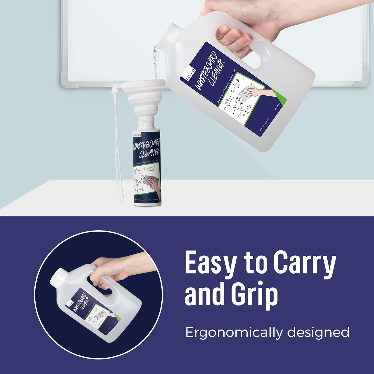 loukin Whiteboard Cleaner, 33.8 Fl Oz Dry Erase Board Cleaner Ready-to-Use Refill, Connected Collapsible Silicone Funnel for Canned Liquid, Removes Whiteboard Stains