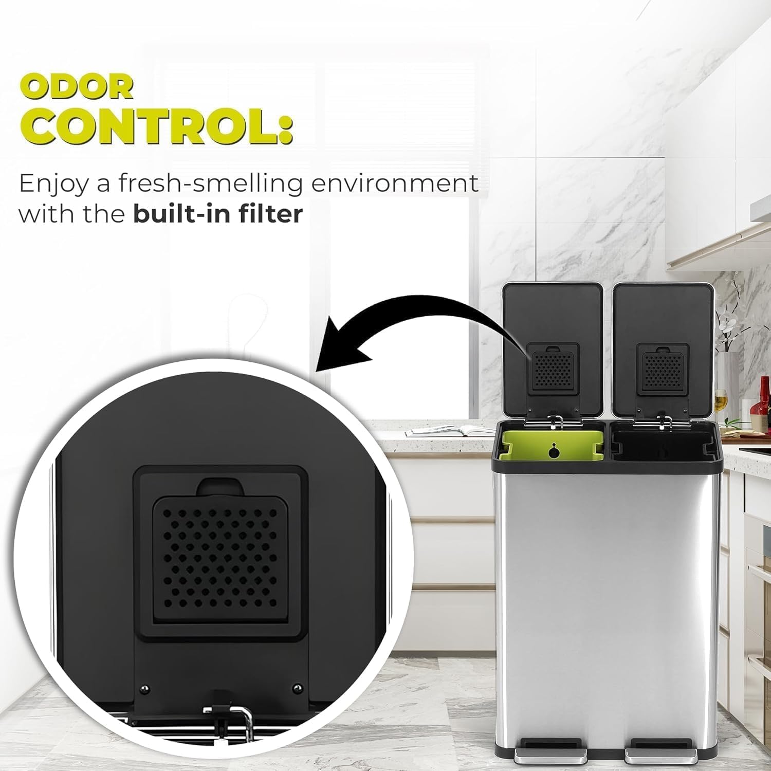 - BUILT IN FILTER FOR ODOR CONTROL.