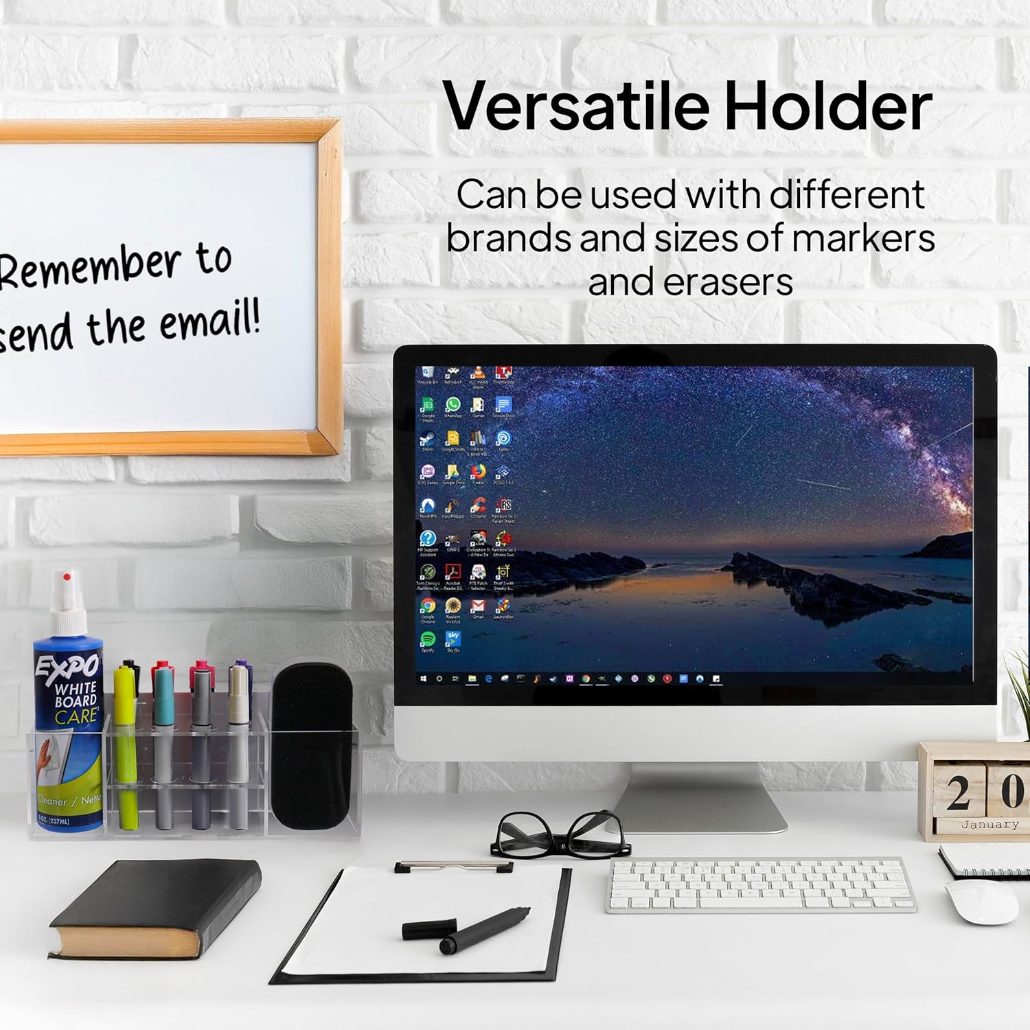 - [Spacious Yet Streamlined Design] Despite its larger capacity, the holder maintains a clean and functional profile that fits seamlessly into any environment. Keep all your whiteboard essentials in one place while maintaining a tidy and efficient workspace. (Markers, erasers, and cleaners not included.)