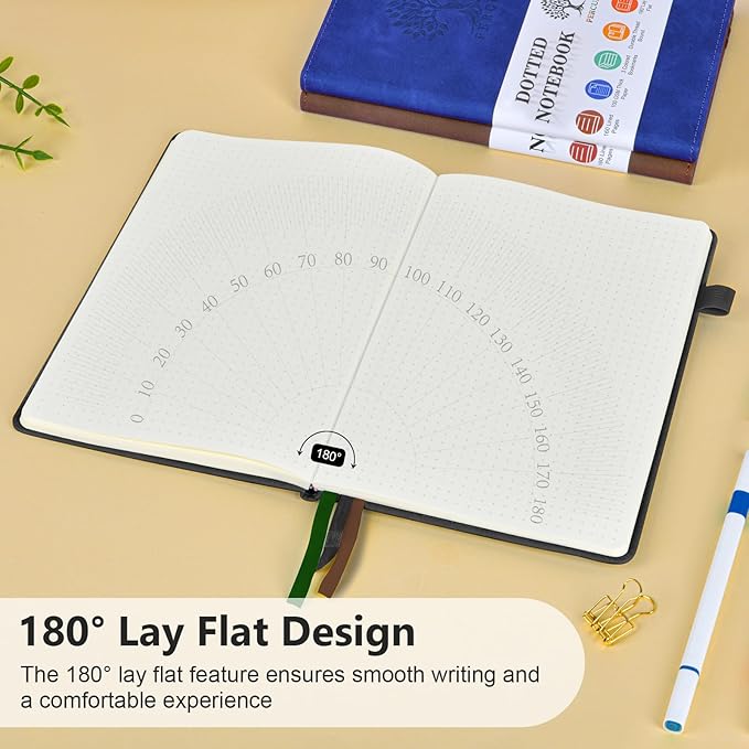 - 【STURDY HARDCOVER & LA-FLAT DESIGN】:Designed for daily use, this hardcover notebook boasts a lay-flat binding that opens 180° for effortless writing. Its professional finish suits both office desks and travel bags, while the reinforced spine ensures long-term durability.