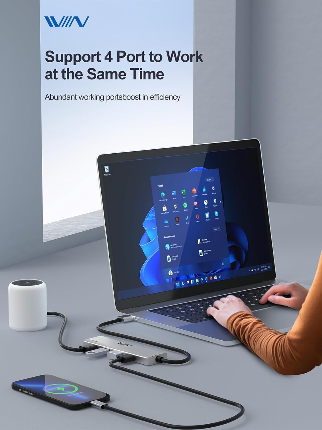 - High-Speed Data Hub: The 4-port USB distributor utilizes high-efficiency USB 3.0 to provide stable data transfers of up to 5Gbps (USB 3.0) and supports transfer speeds of 480Mbps (USB 2.0) and 12Mbps (USB 1.1).***This device is only used for data transmission and cannot be used to charge the device***
