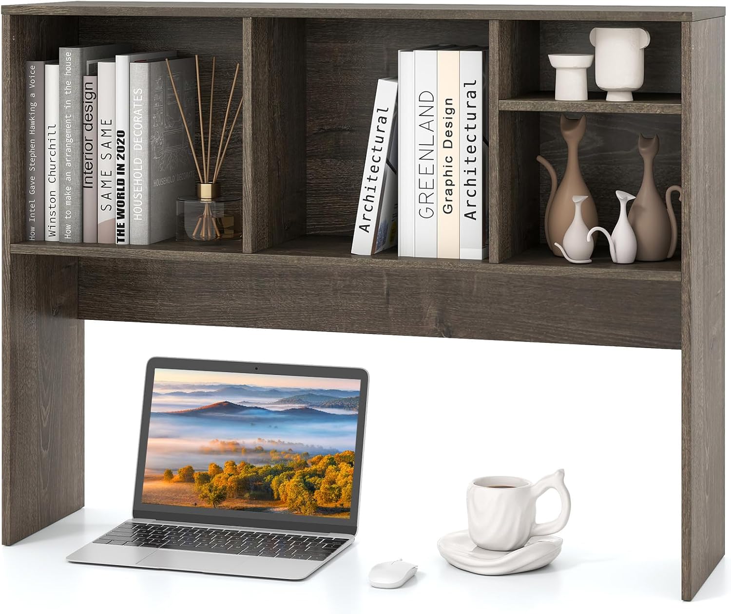 Tangkula Desktop Bookshelf, Countertop Storage Hutch with 4 Shelves for Computer Desk, Desktop 2-Tier Display Rack, Multipurpose Wood Desk Hutch Storage Organizer for Dorm Office Home
