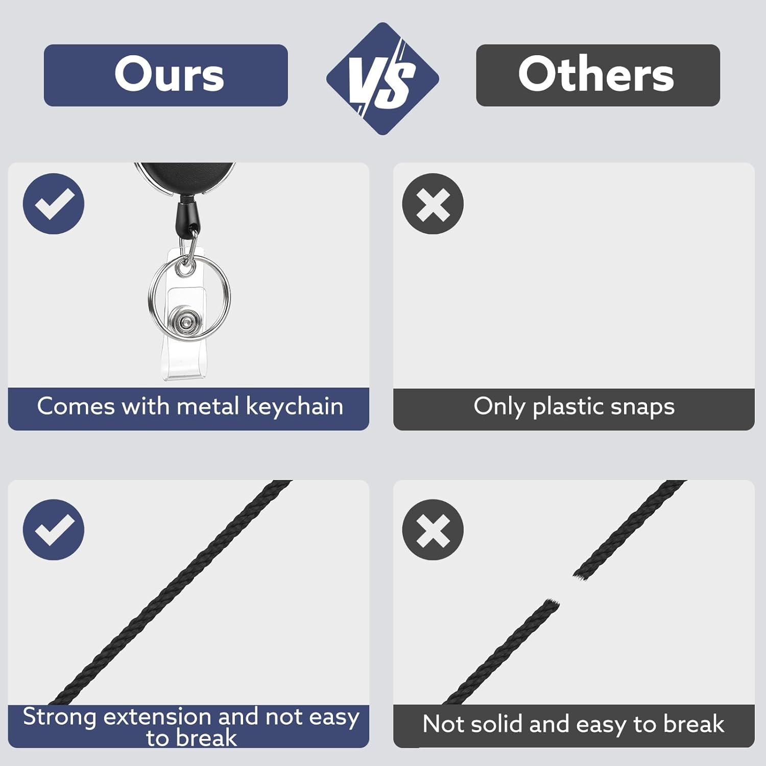 - 【Durable Material】Our retractable badge reel is made of solid plastic and metal. The plastic strip has a large load capacity, which is small and easy to carry.