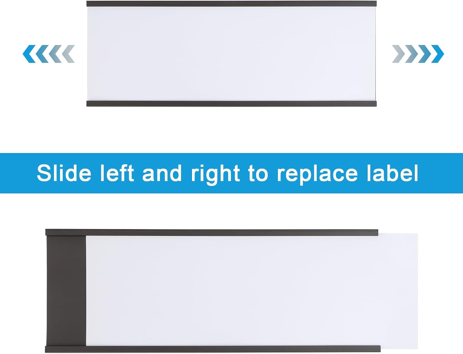 - Easy to use: write on the included paper strip, slide in the paper insert and the transparent protective film, stick the magnetic label holder to clean and flat surface, saving time and making reposition easier compared with traditional adhesive labels