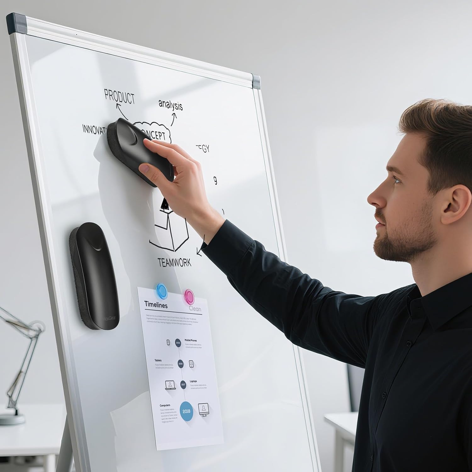 - BUILT-IN MAGNET: Easily sticks to any magnetic whiteboard or metal surface, keeping it right where you need it