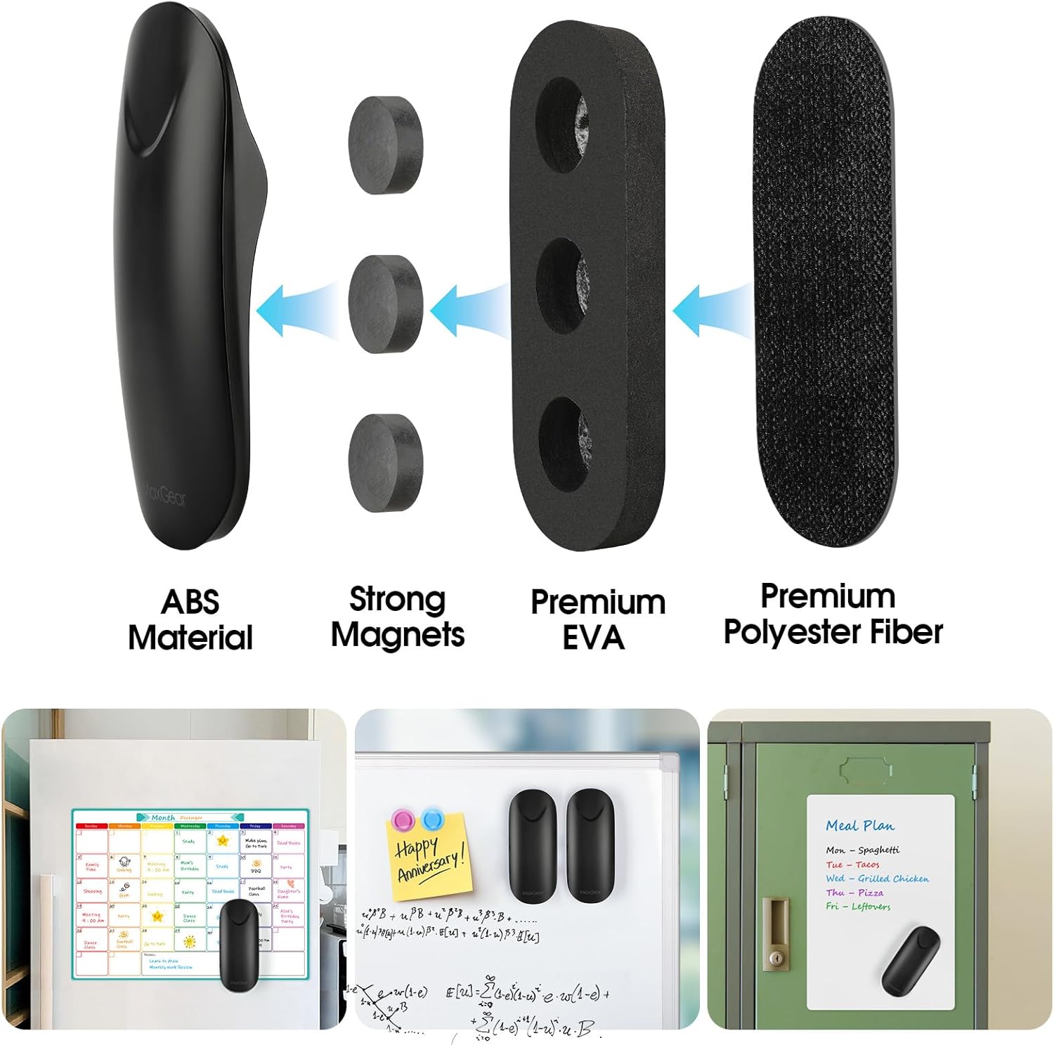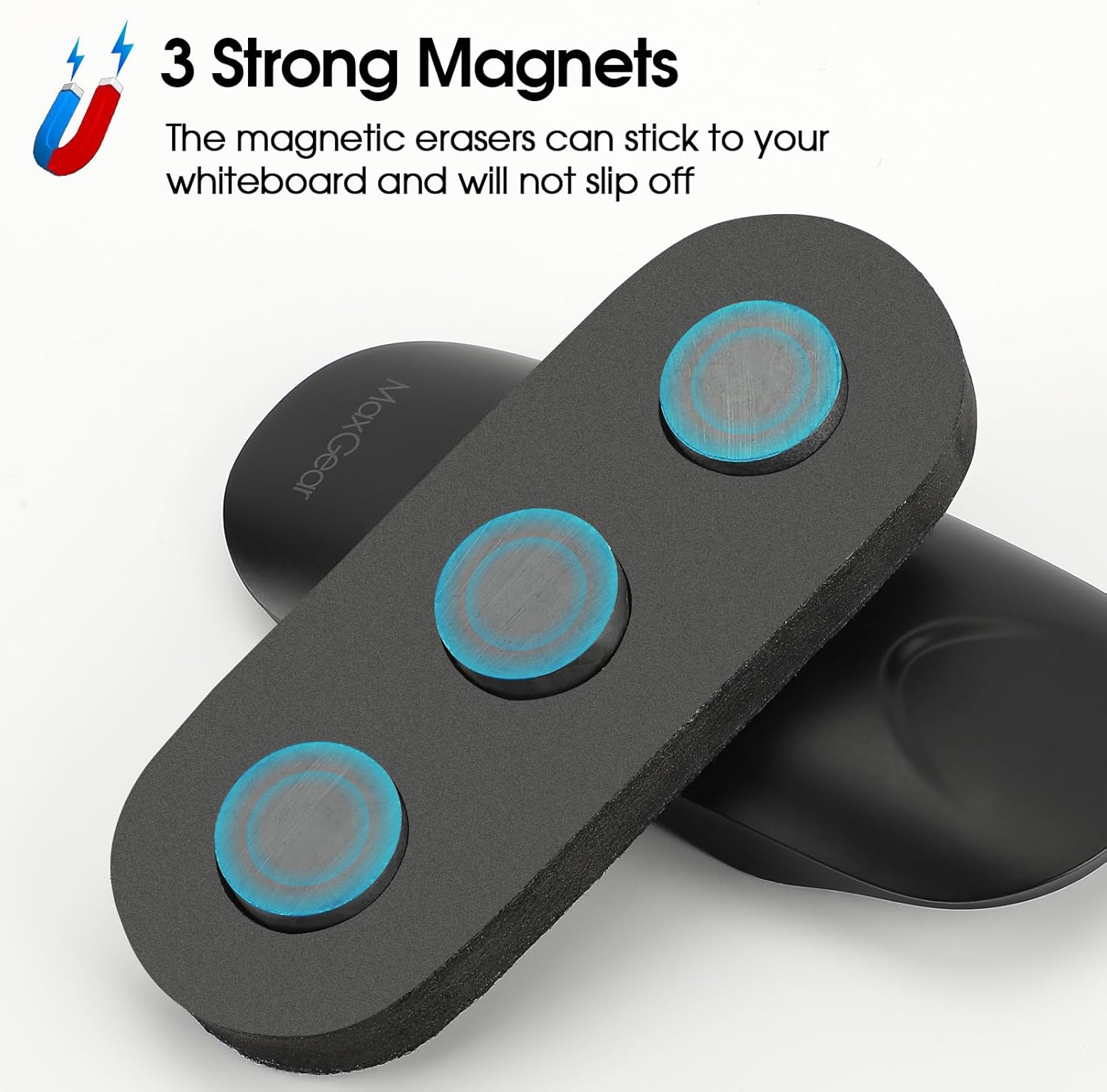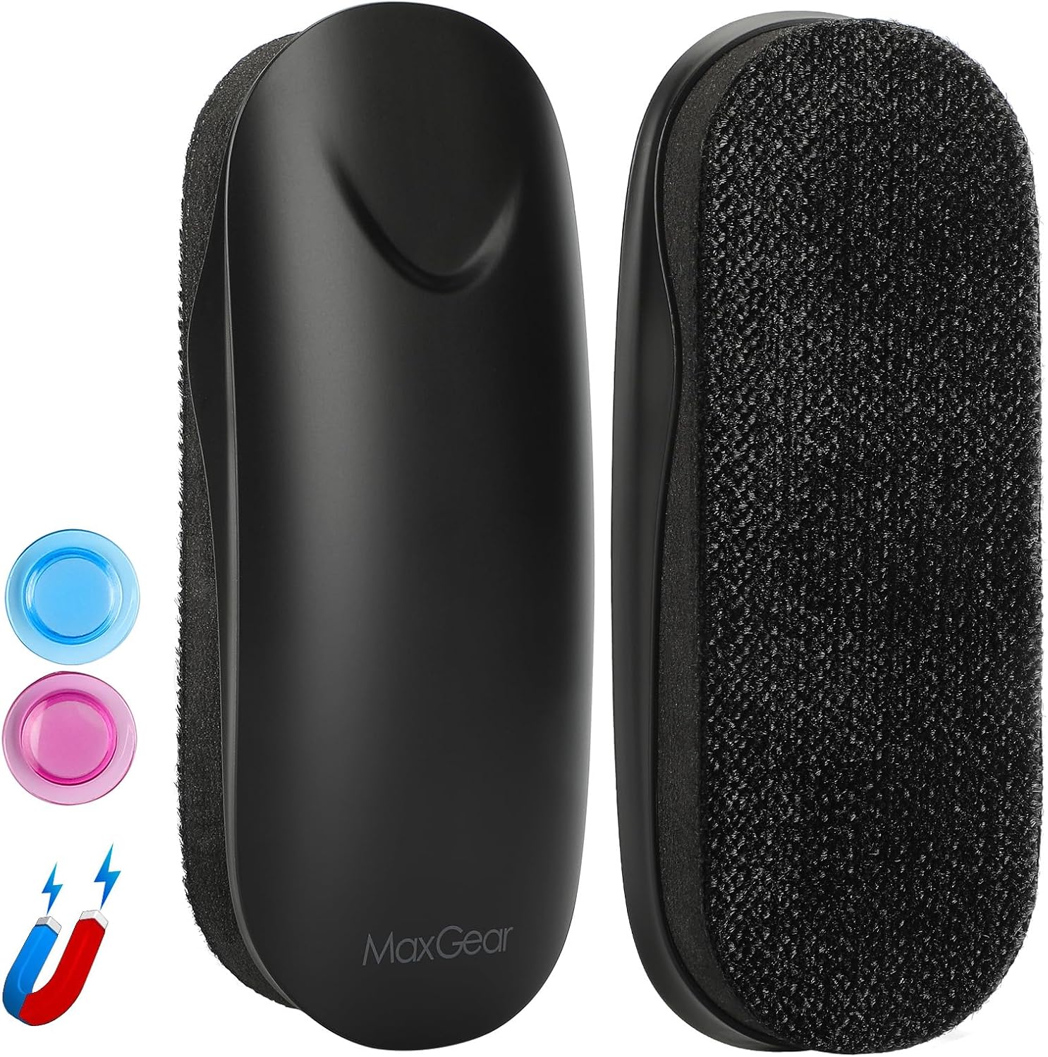 MaxGear Dry Erase Eraser, Magnetic Whiteboard Eraser for Glass Board, Dry Erase Board, Dry Erase Board, Chalkboard Wiper with Built-in Magnet, Teacher Supplies for School, Office, Home, Black, 2 Pack