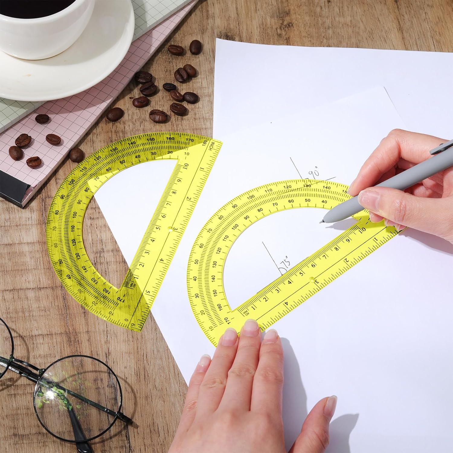 Zonon 2 Pcs 6 Inch Plastic Protractor Math Protractors 180 Degrees Angle Measurement, Translucent for Geometry Classroom Kid Student School Office Supplies(Yellow)
