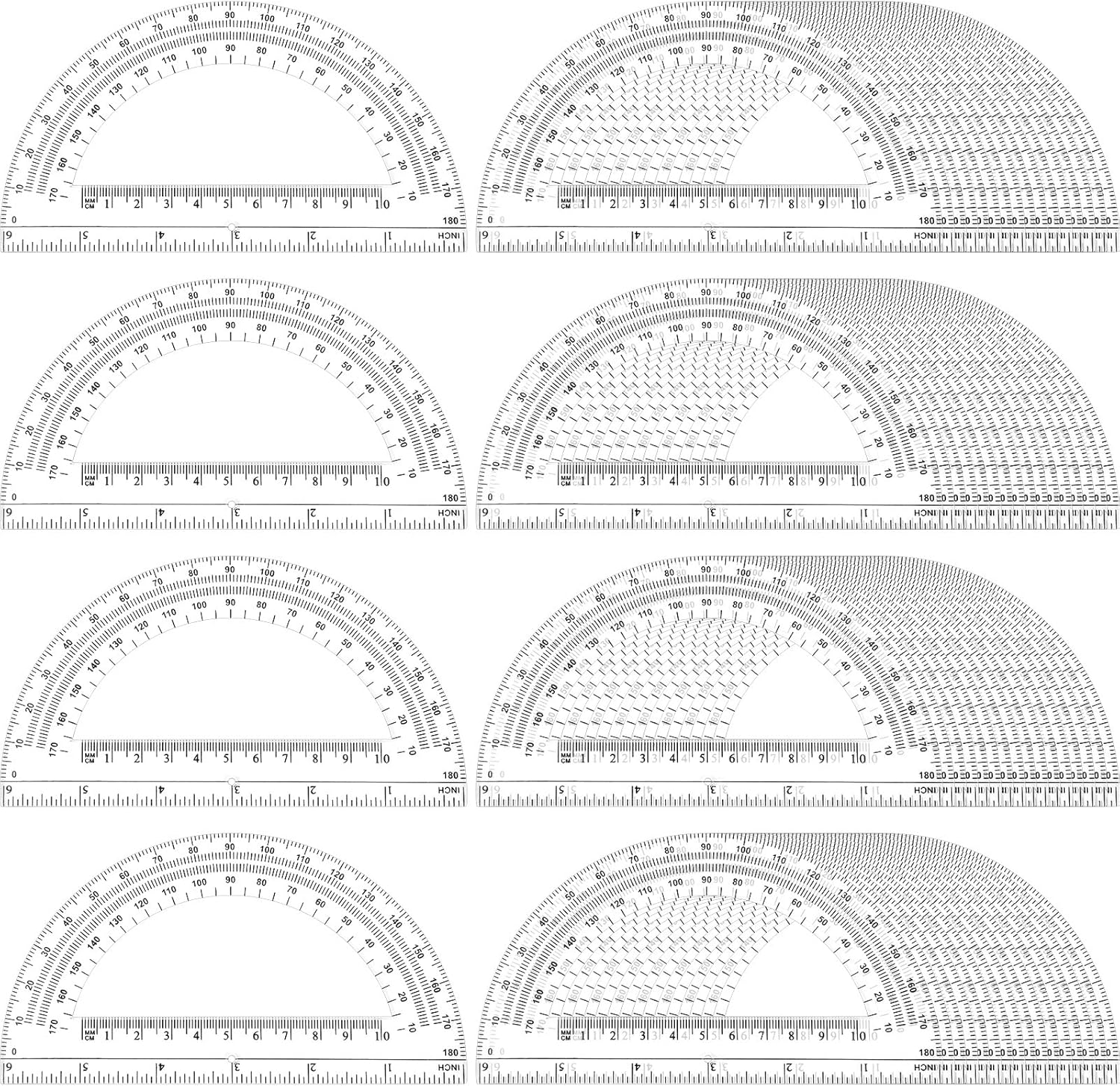 - Good Quality: the transparent protractor is made of reliable plastic and easy to carry and put in a pencil case or a backpack; These clear plastic protractors make it easier to observe the measure data so as to help draw and measure angles and shapes accurately; The thickness of the protractors is controlled so that they are not easy to break
