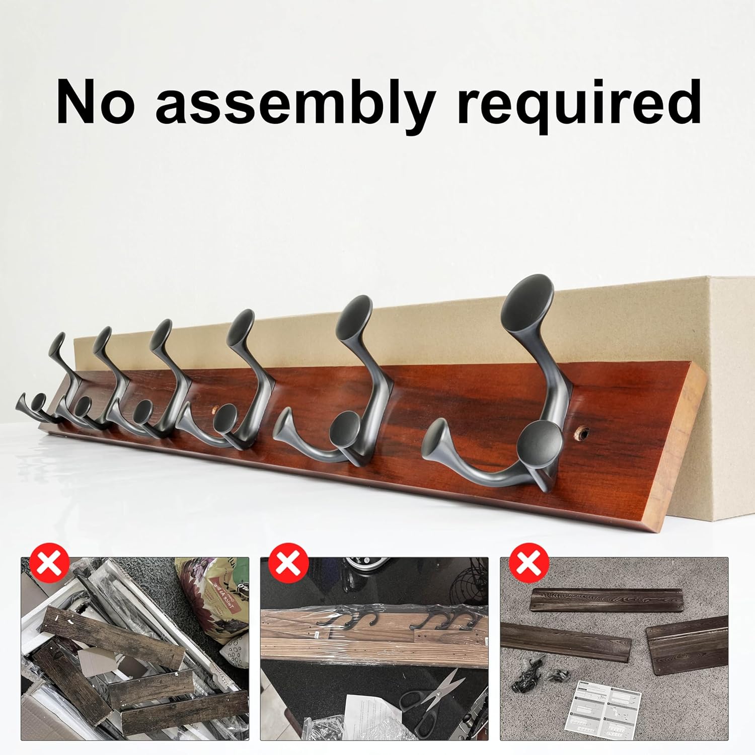 SKOLOO 36-Inch Cherry Wood Coat Rack Wall Mount with 6 Triple Hooks - Ideal for Family Entrances, Classrooms, and Pet Supplies Storage - Perfect Coat Hooks for Wall